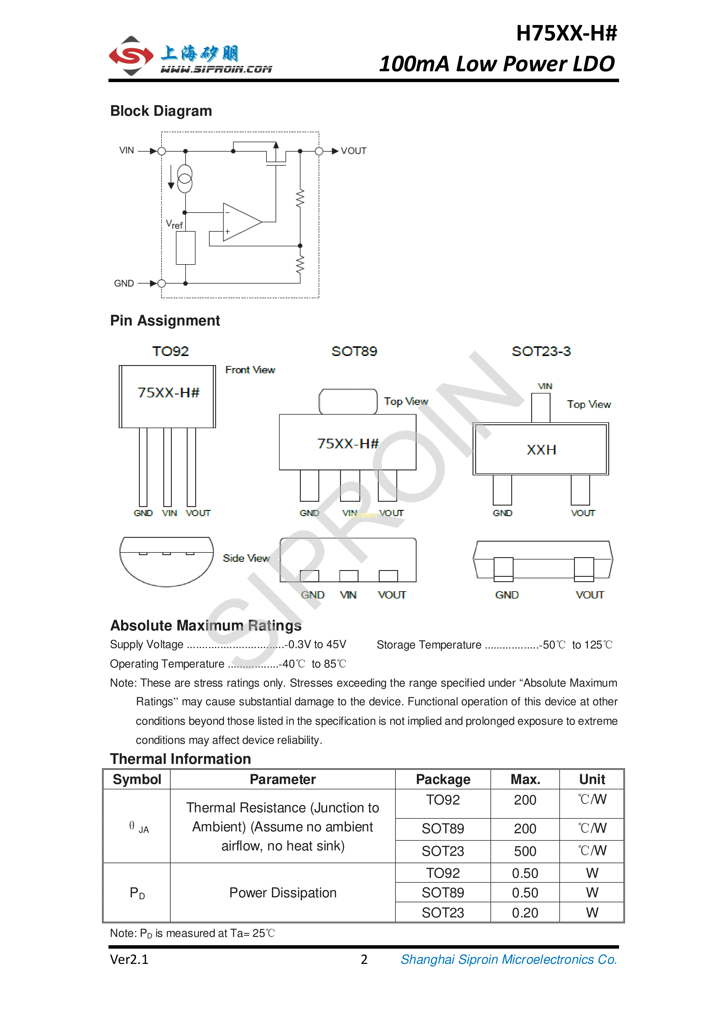 H7536-H#数据手册SOT-89封装Siproin(上海矽朋)PDF规格书,中英文下载