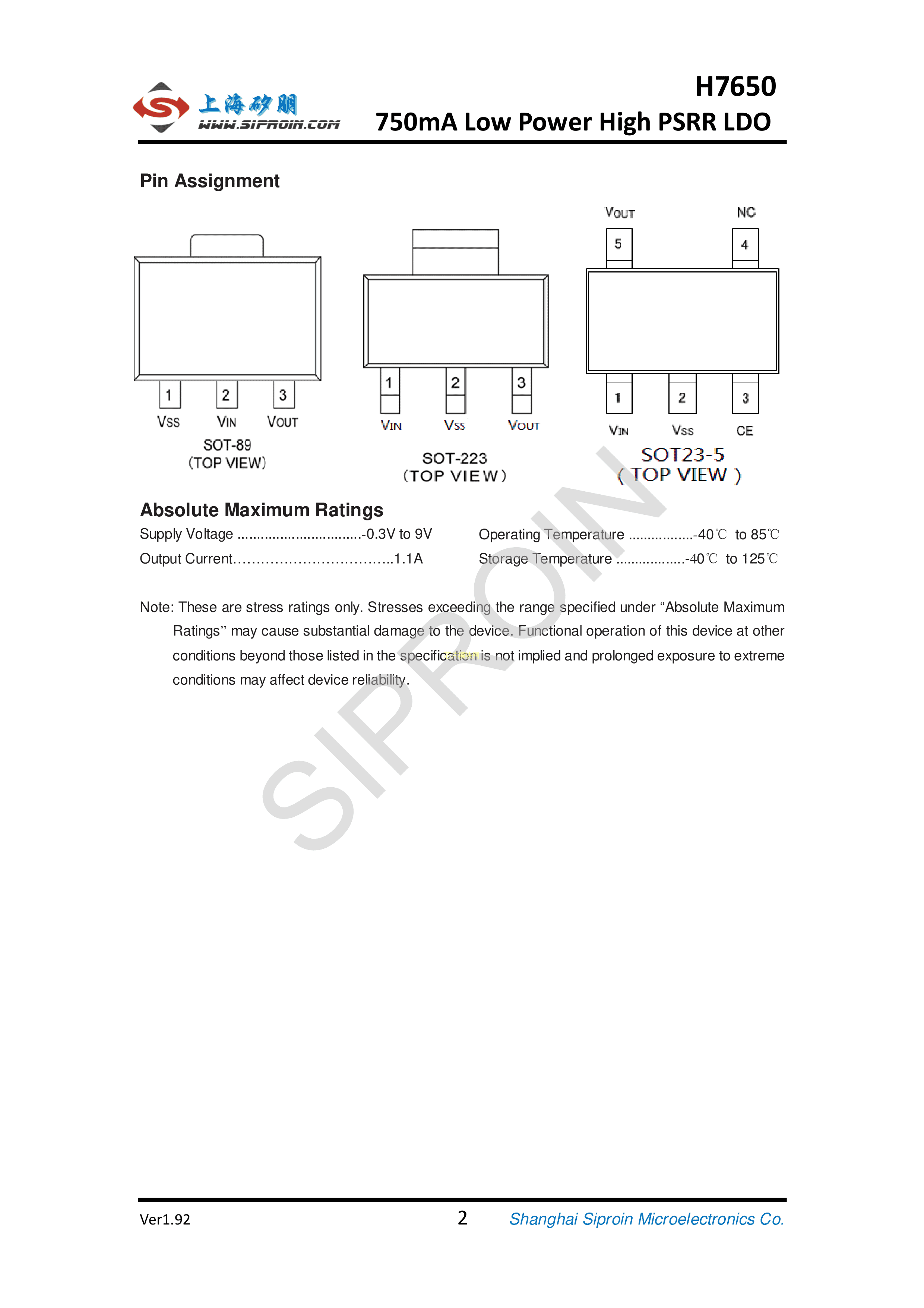 H7650-30PR数据手册SOT-89封装Siproin(上海矽朋)PDF规格书,中英文下载