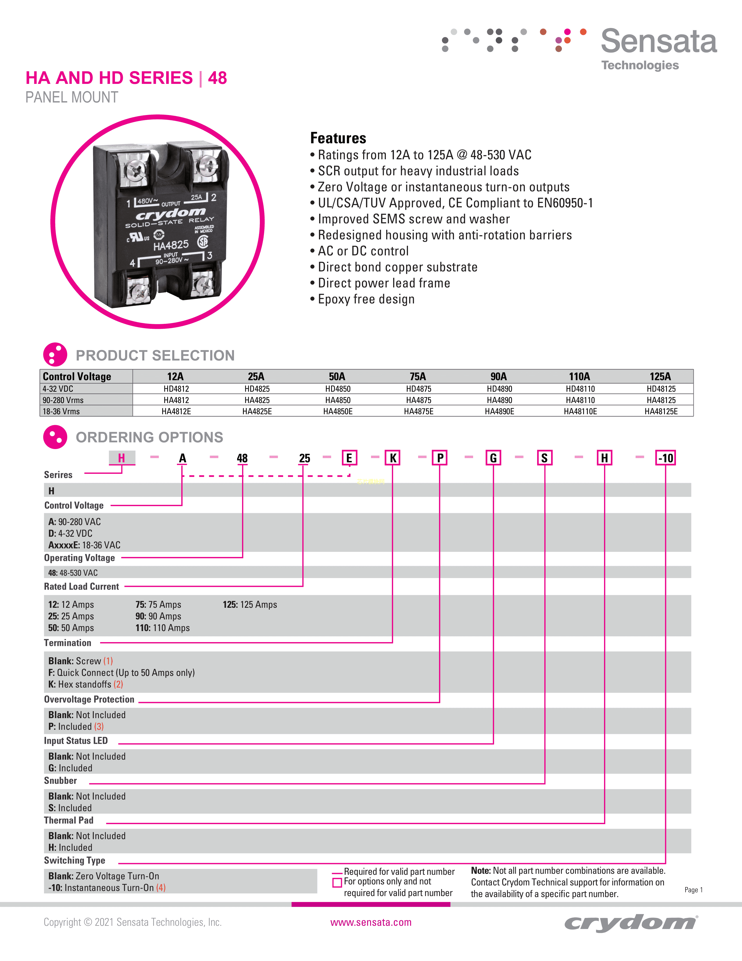 HA4812E-10数据手册-封装SensataPDF规格书,中英文下载