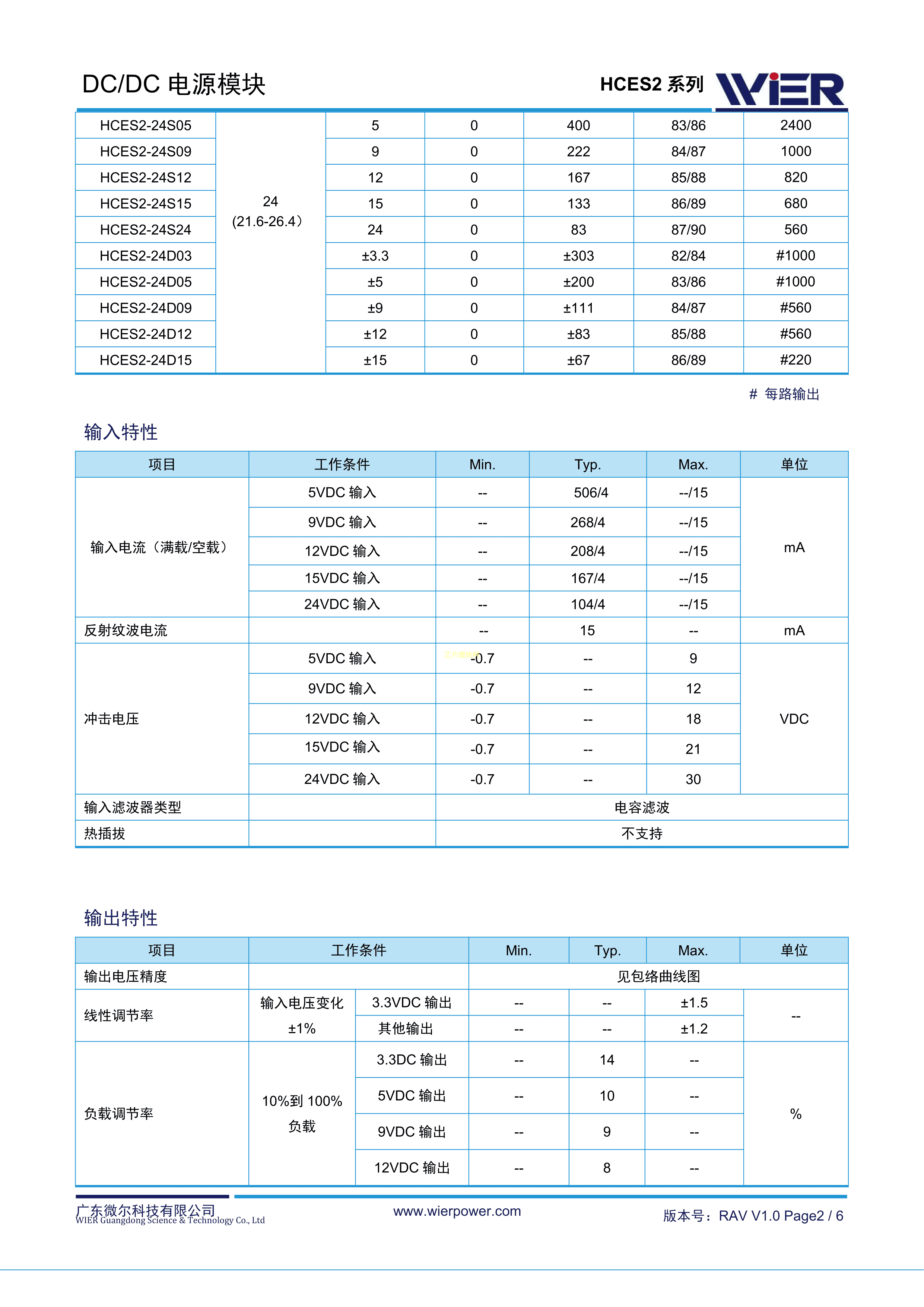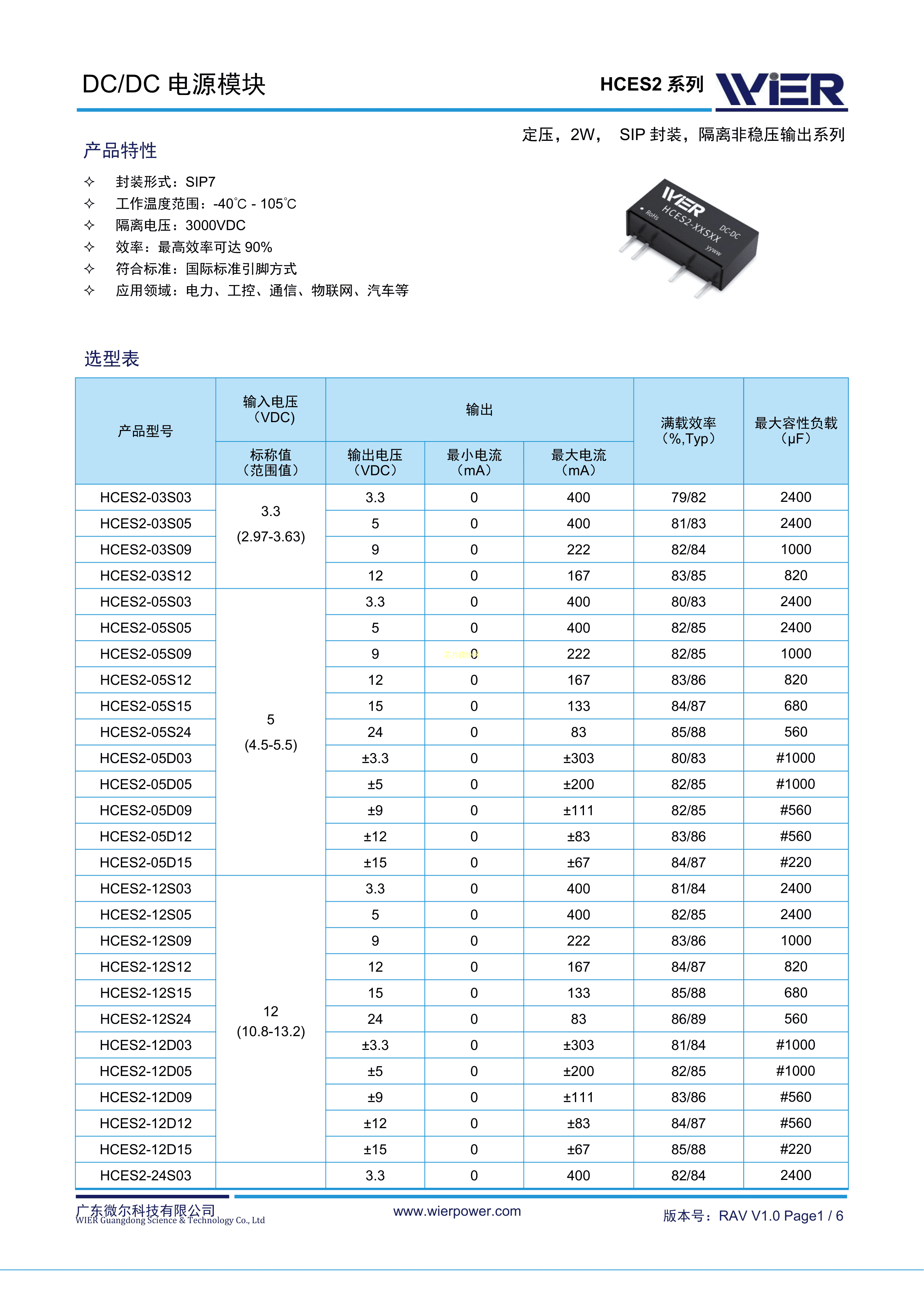 HCES2-05S03数据手册插件封装WIER(微尔)PDF规格书,中英文下载
