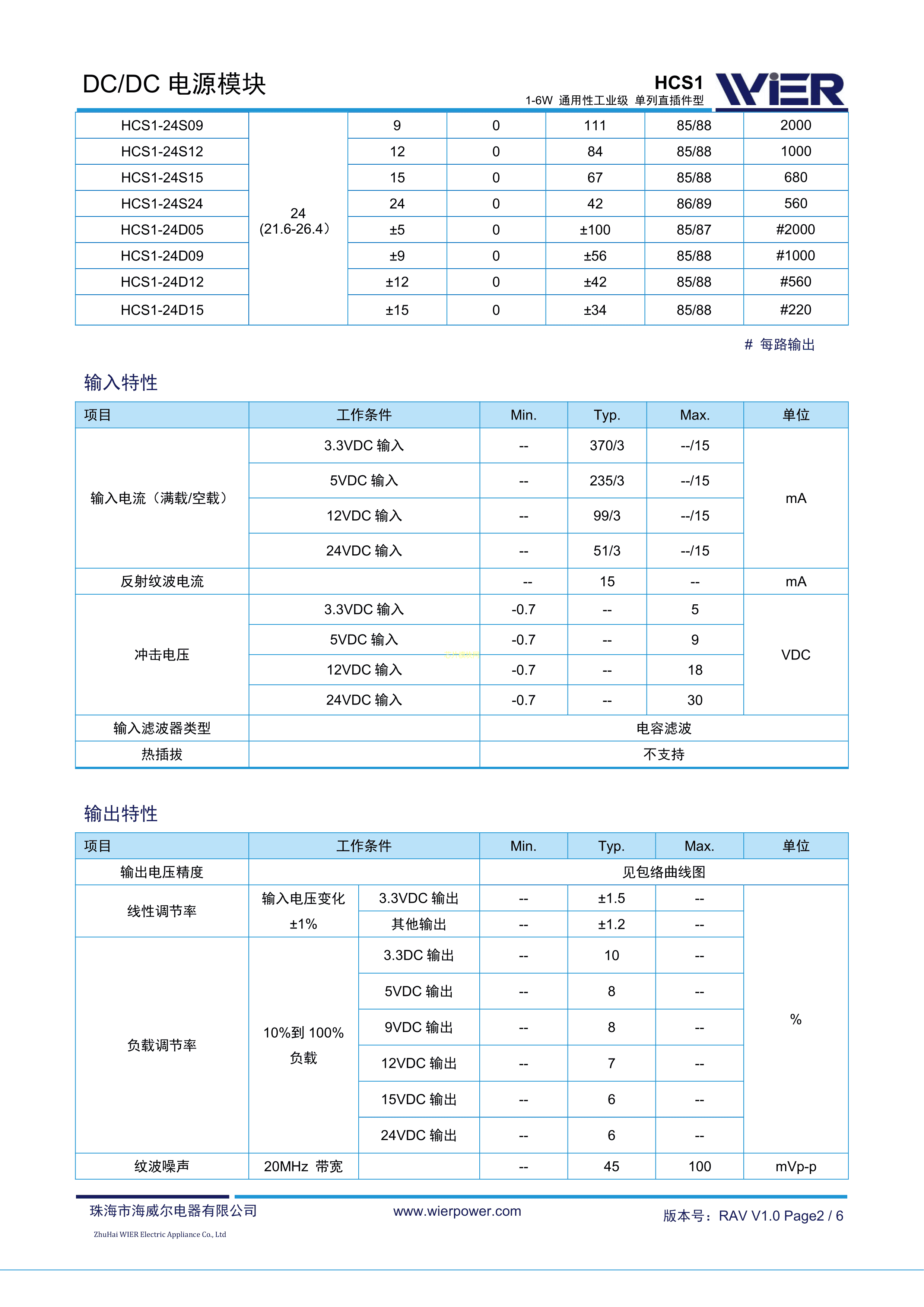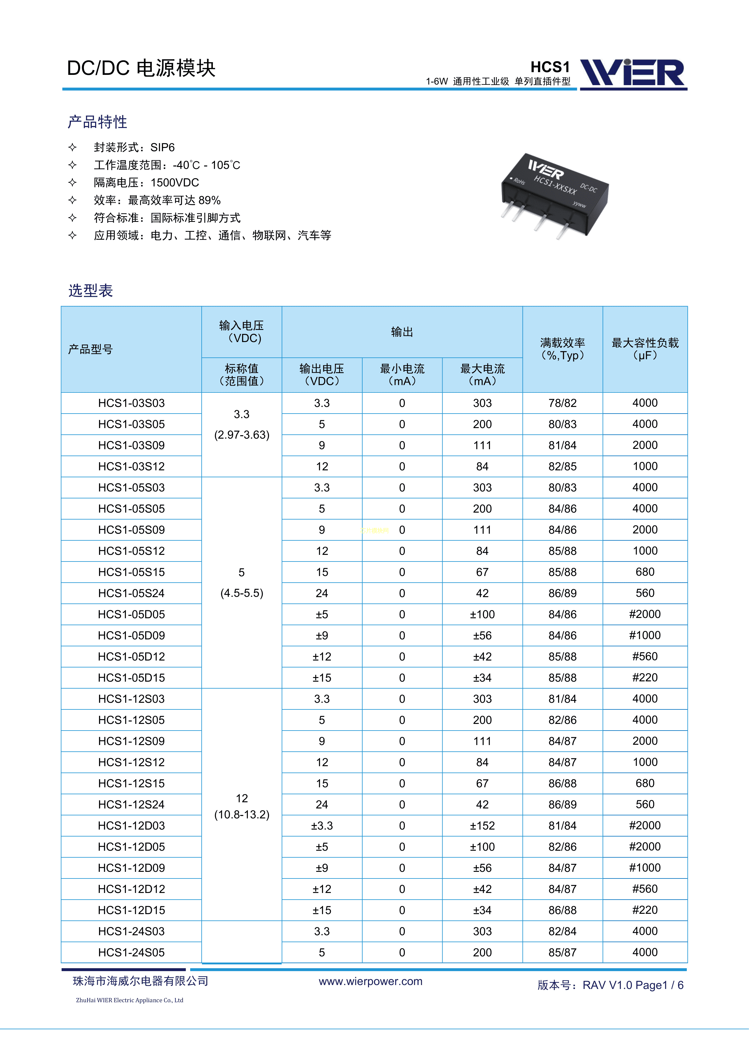 HCS1-03S12数据手册插件封装WIER(微尔)PDF规格书,中英文下载
