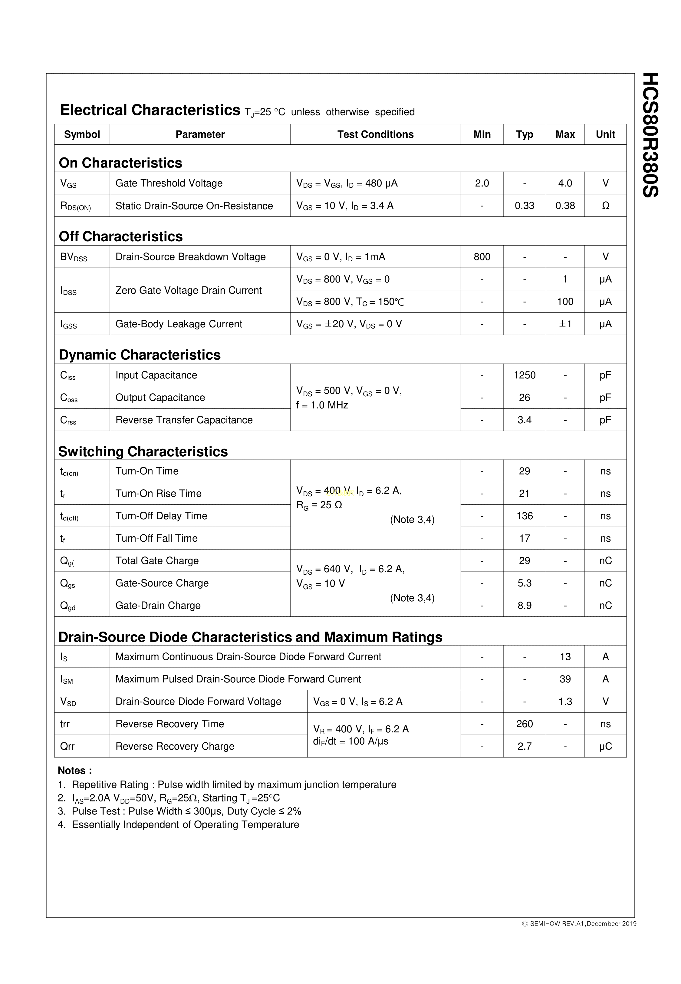 HCS80R380S-FM_GREEN数据手册TO-220FS封装SemiHowPDF规格书,中英文下载