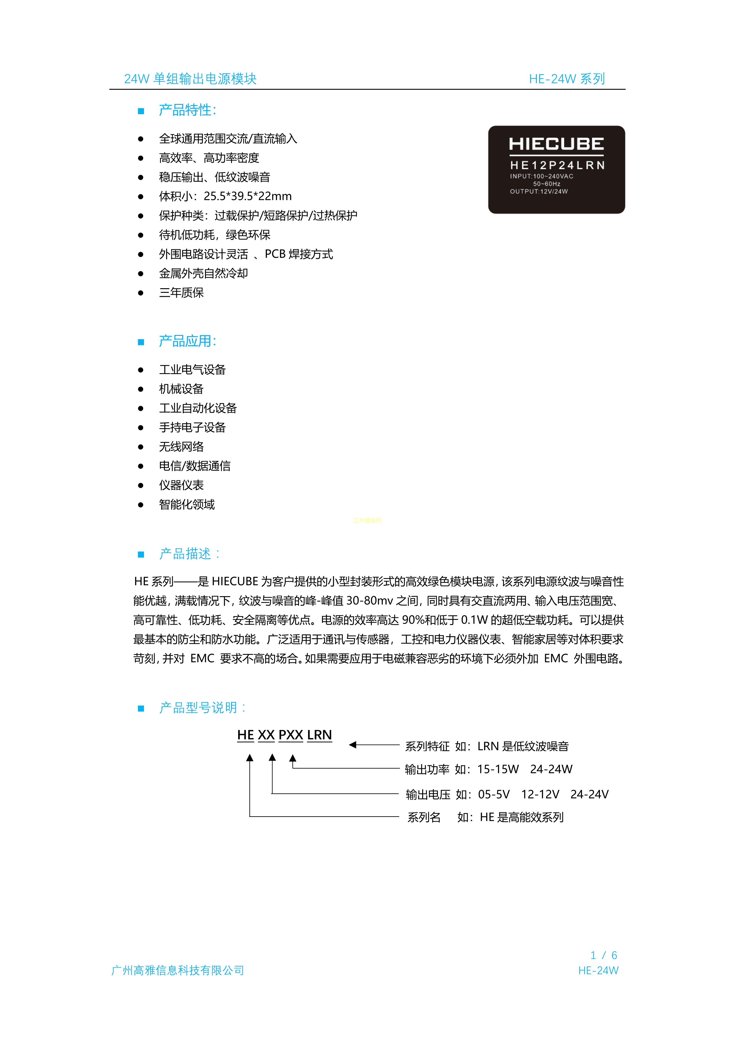 HE15P24LRN数据手册插件封装HIECUBE(高能立方)PDF规格书,中英文下载