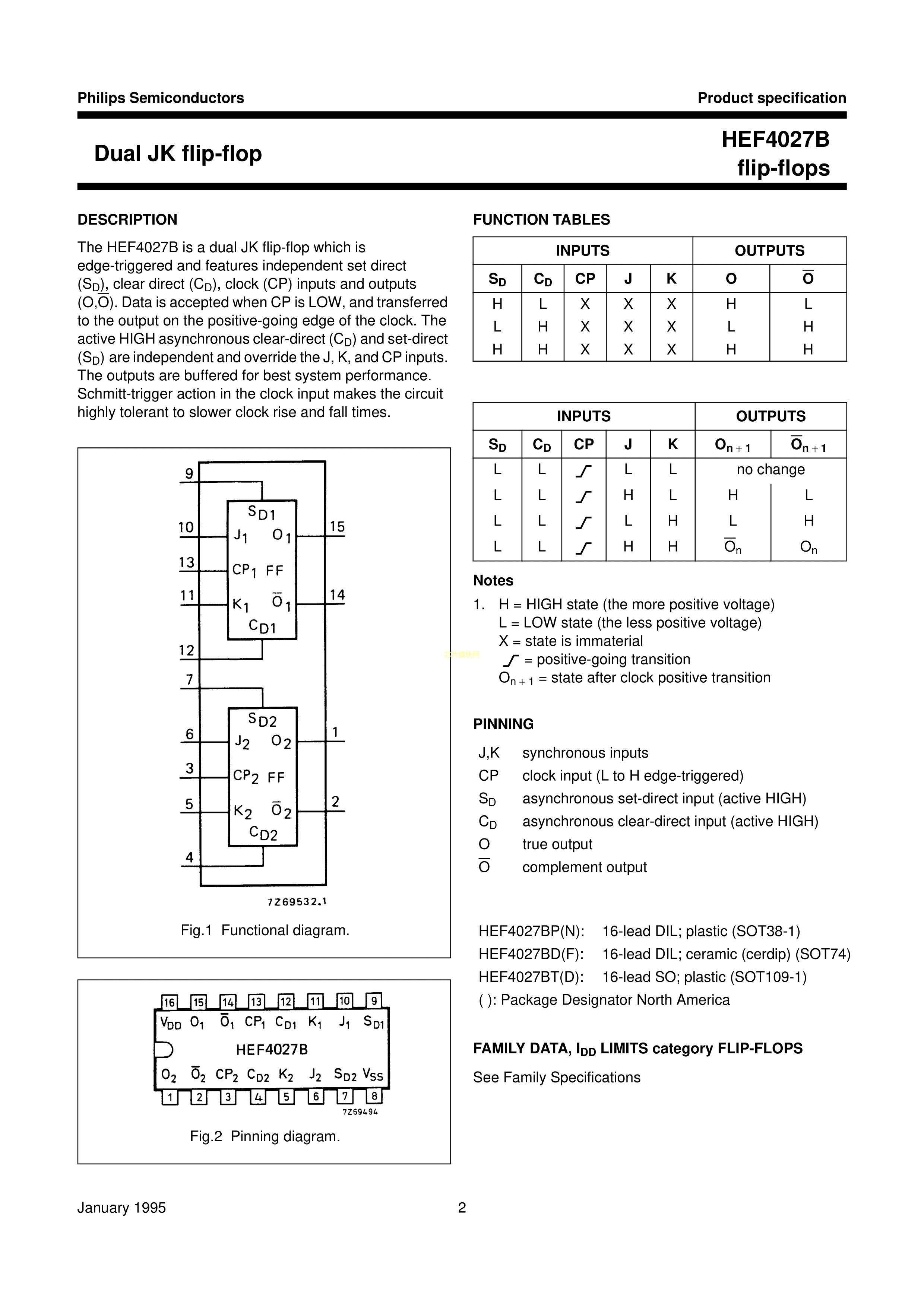 HEF4027BT653数据手册SOIC-16_150mil封装Nexperia(安世)PDF规格书