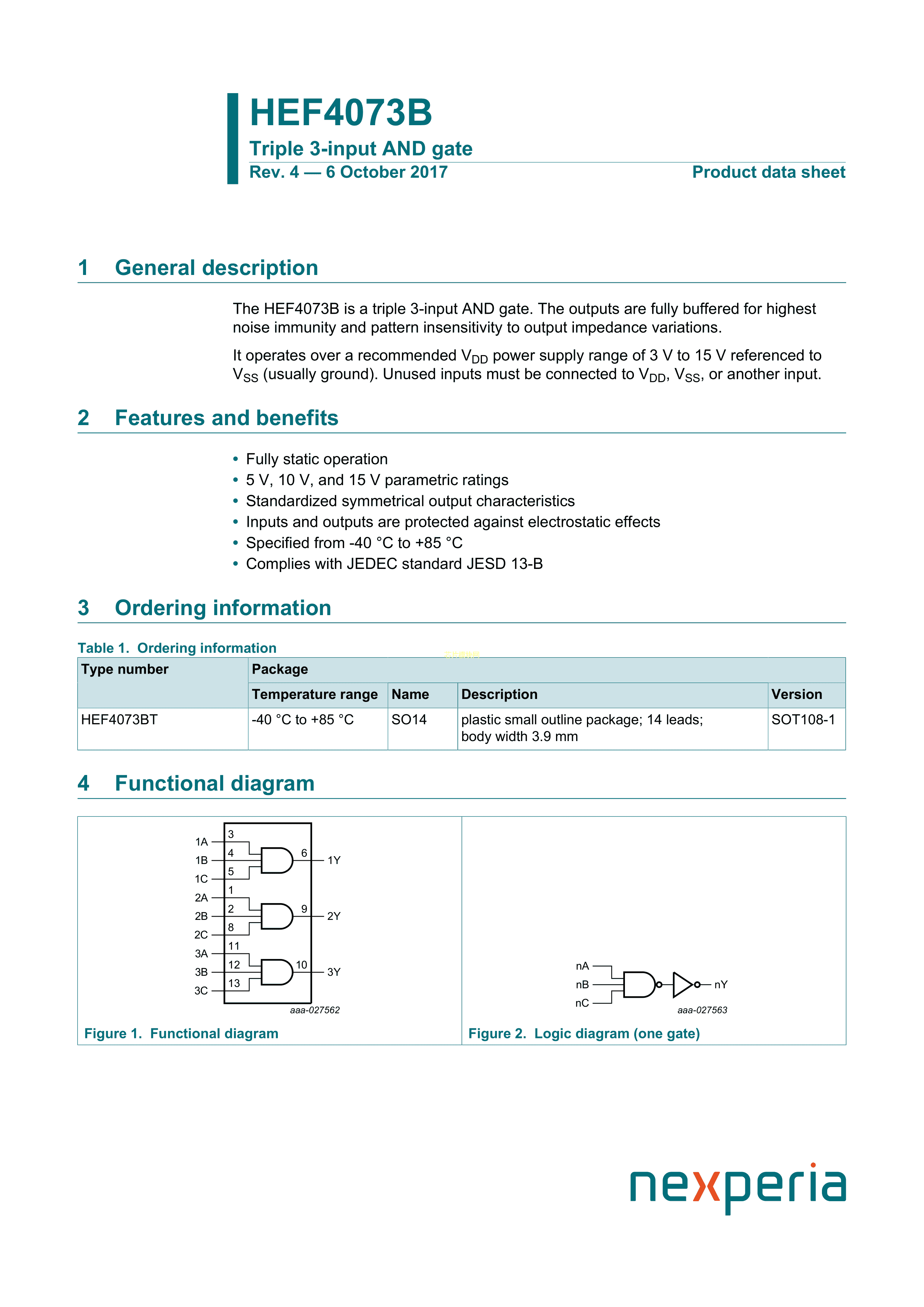 HEF4073BT652数据手册SO-14封装Nexperia(安世)PDF规格书,中英文下载