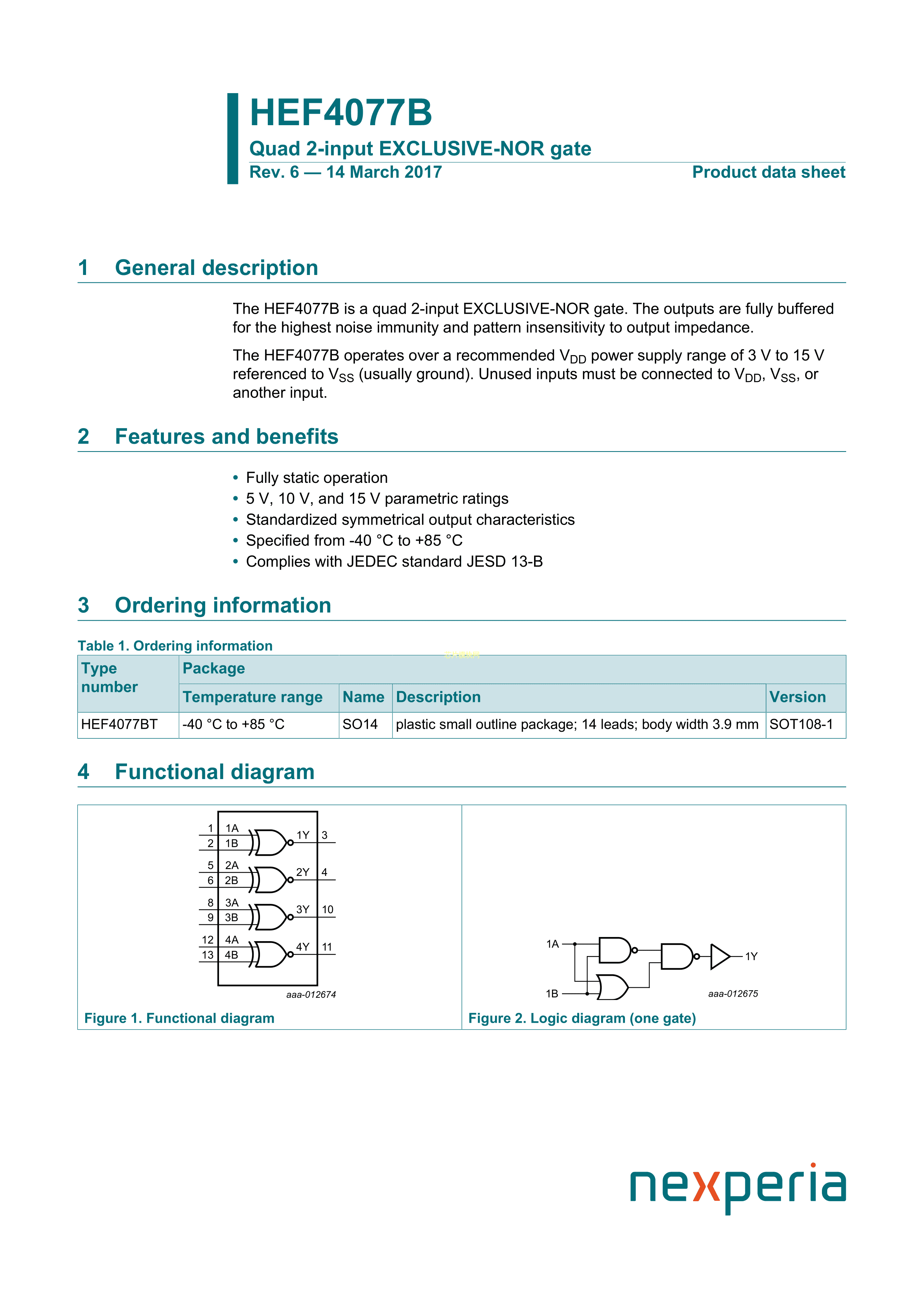 HEF4077BT653数据手册SO-14封装Nexperia(安世)PDF规格书,中英文下载