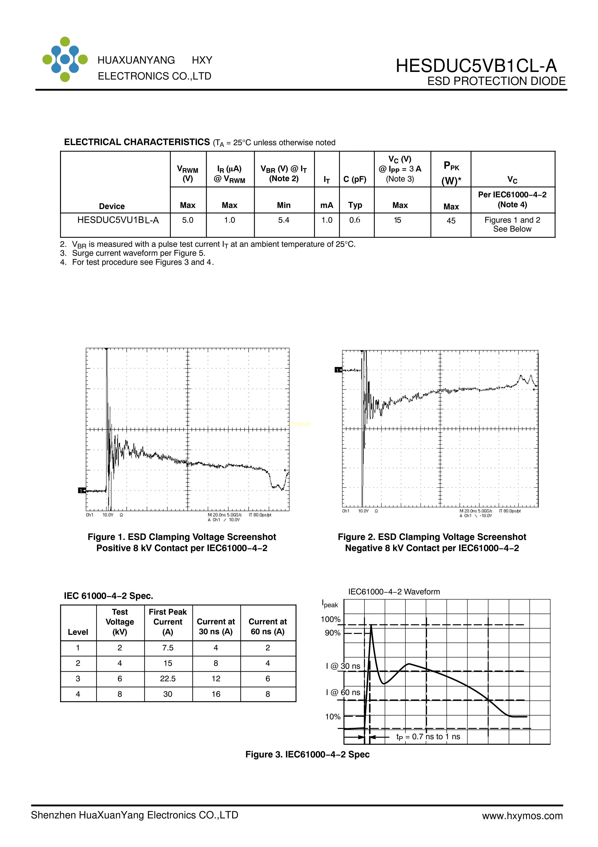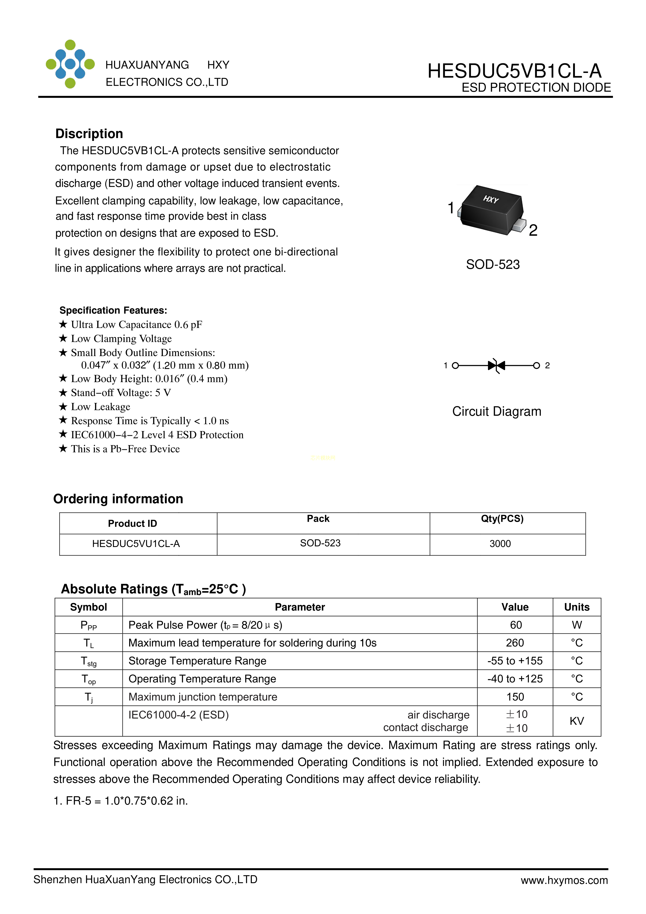 HESDUC5VB1CL-A数据手册SOD-523封装HXY MOSFET(华轩阳电子)PDF规格书