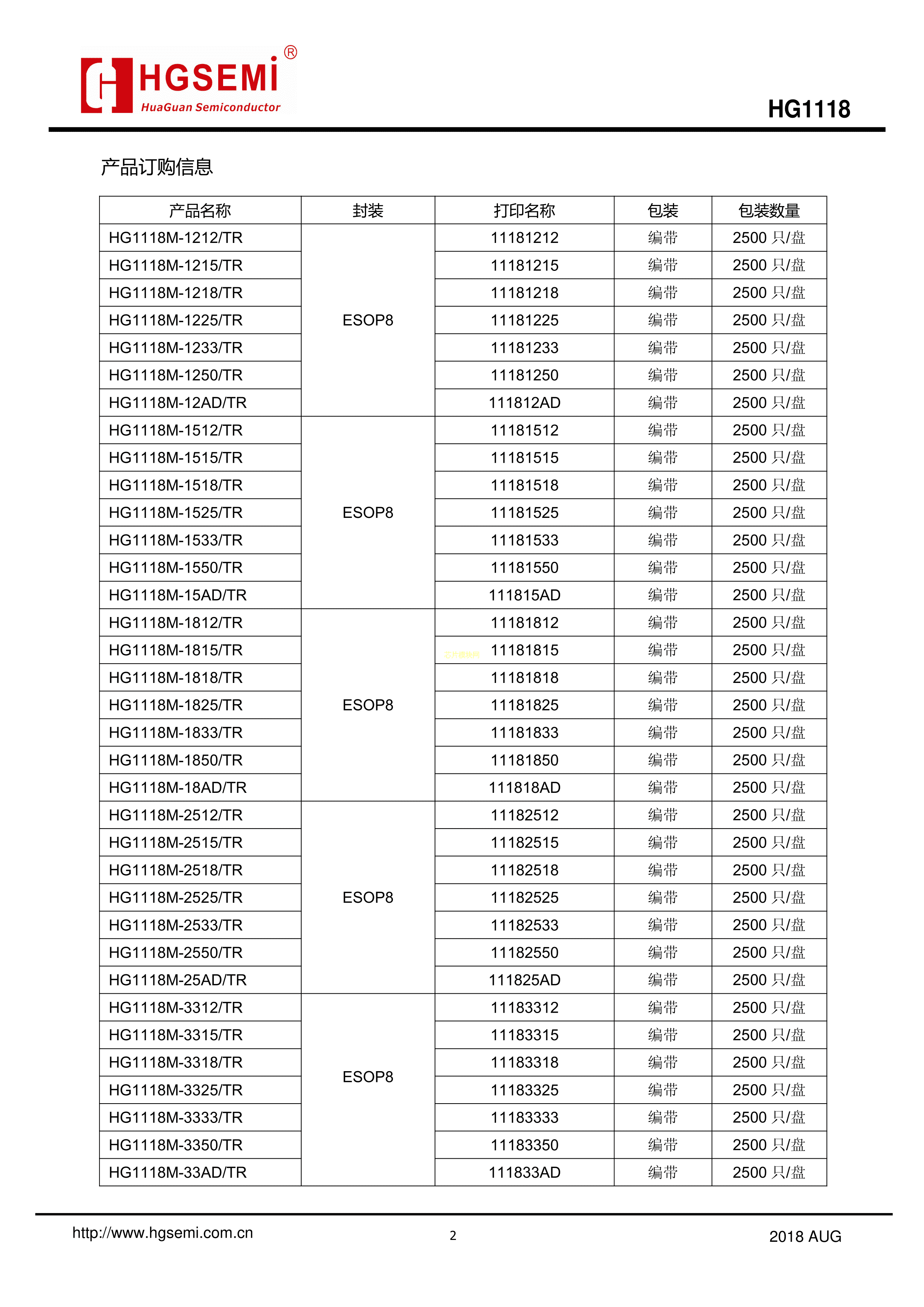 HG1118M-AD33-TR数据手册ESOP-8封装HGSEMI(华冠)PDF规格书,中英文下载