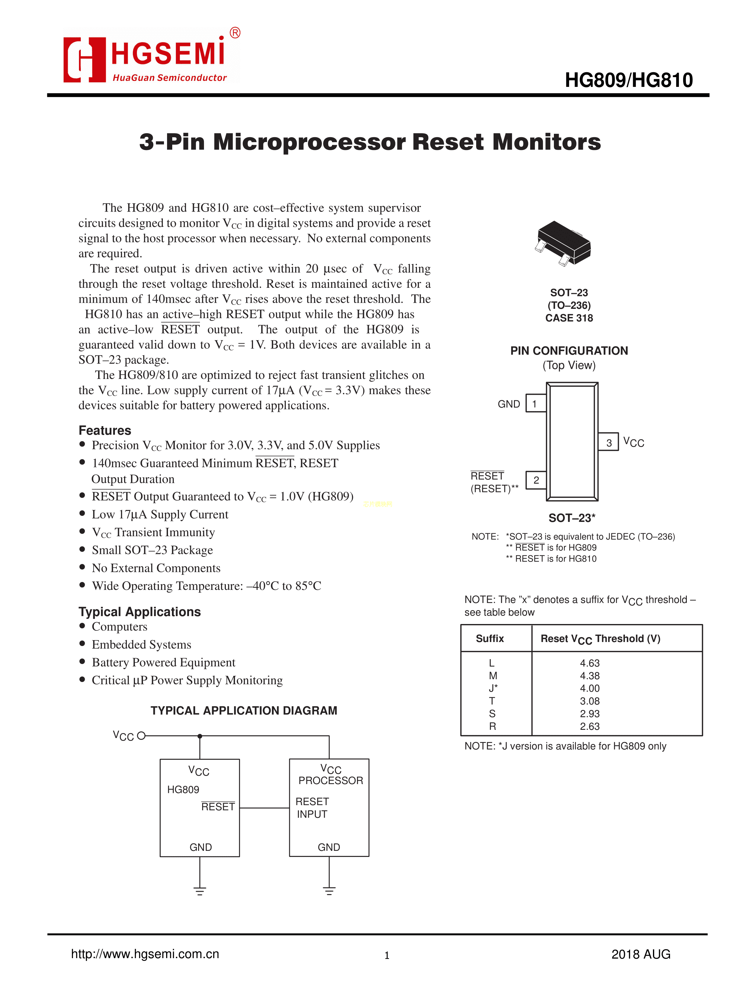 HG810SM3-TR数据手册SOT-23-3封装HGSEMI(华冠)PDF规格书,中英文下载