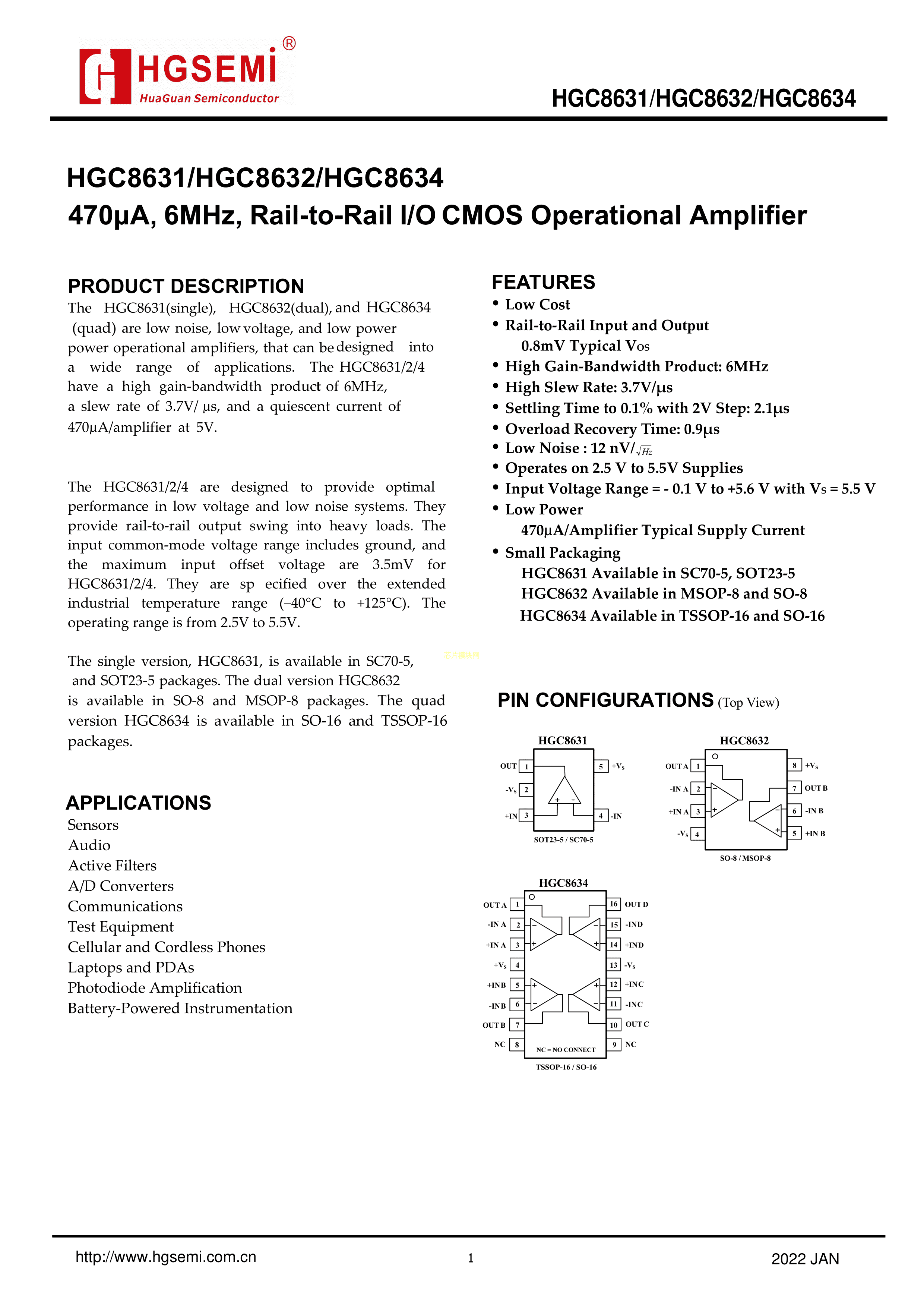 HGC8632M-TR数据手册SOP-8L封装HGC(华冠)PDF规格书,中英文下载