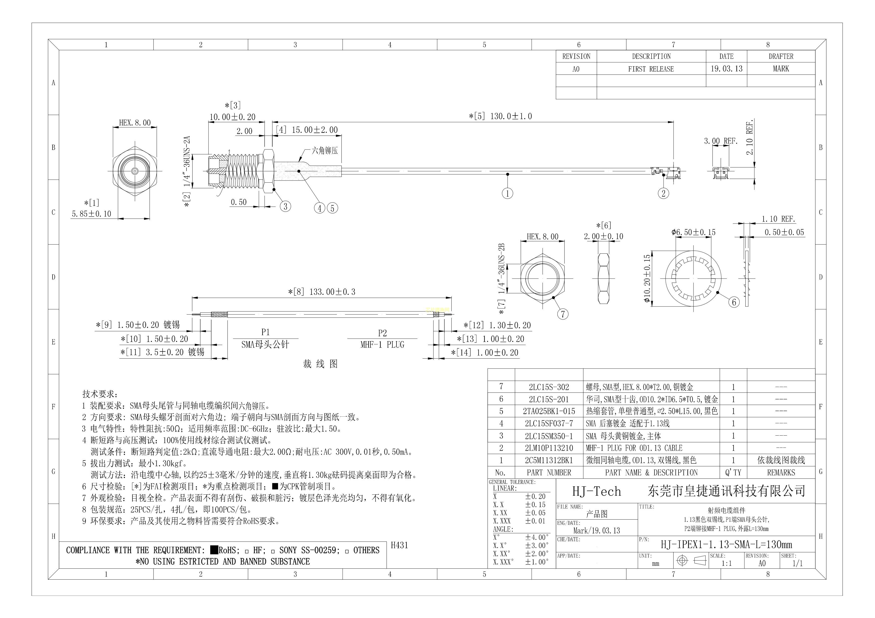 HJ-IPEX1-1.13-SMA-L130mm数据手册-封装皇捷PDF规格书,中英文下载