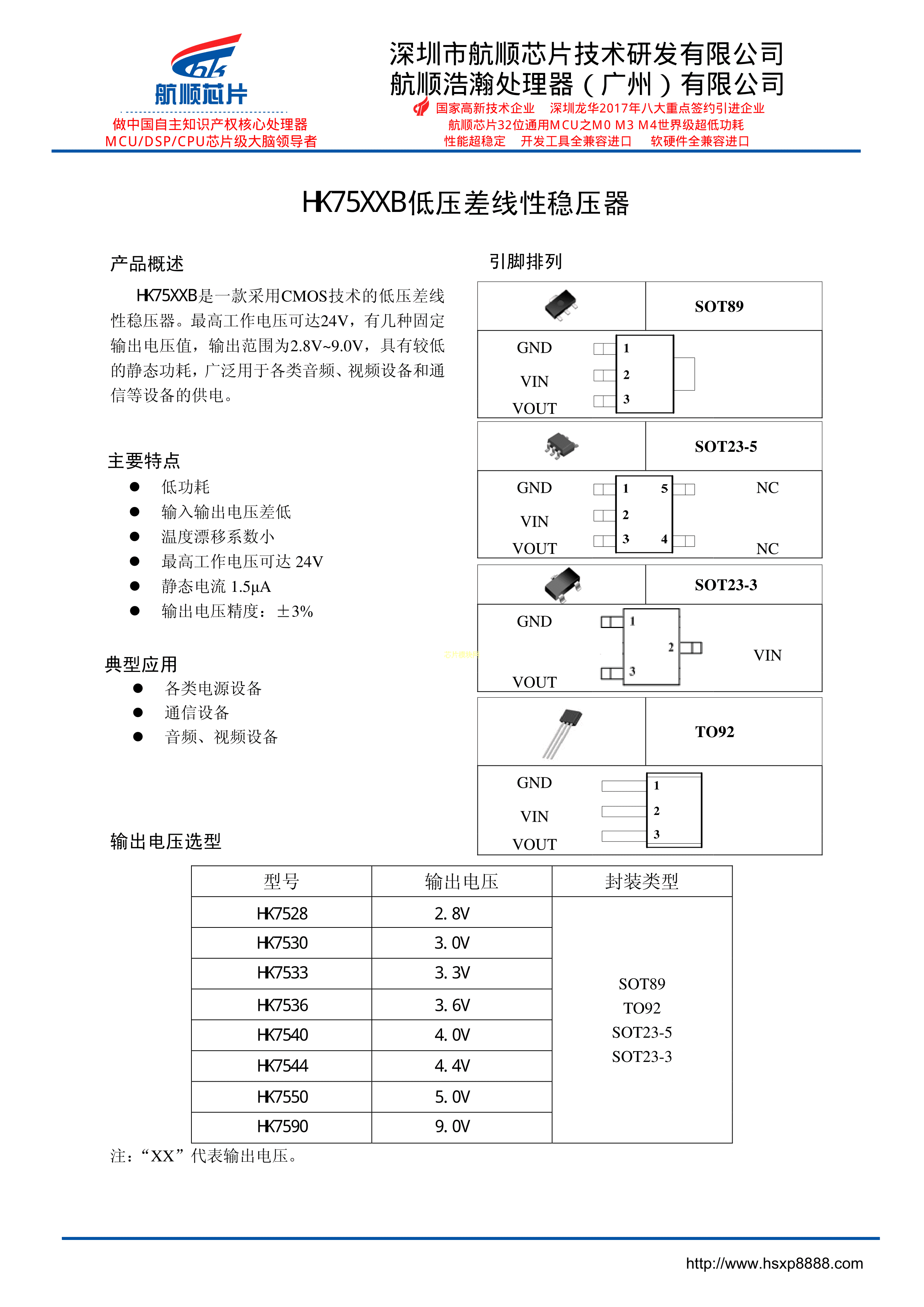 HK7533数据手册SOT-89封装HK(航顺)PDF规格书,中英文下载