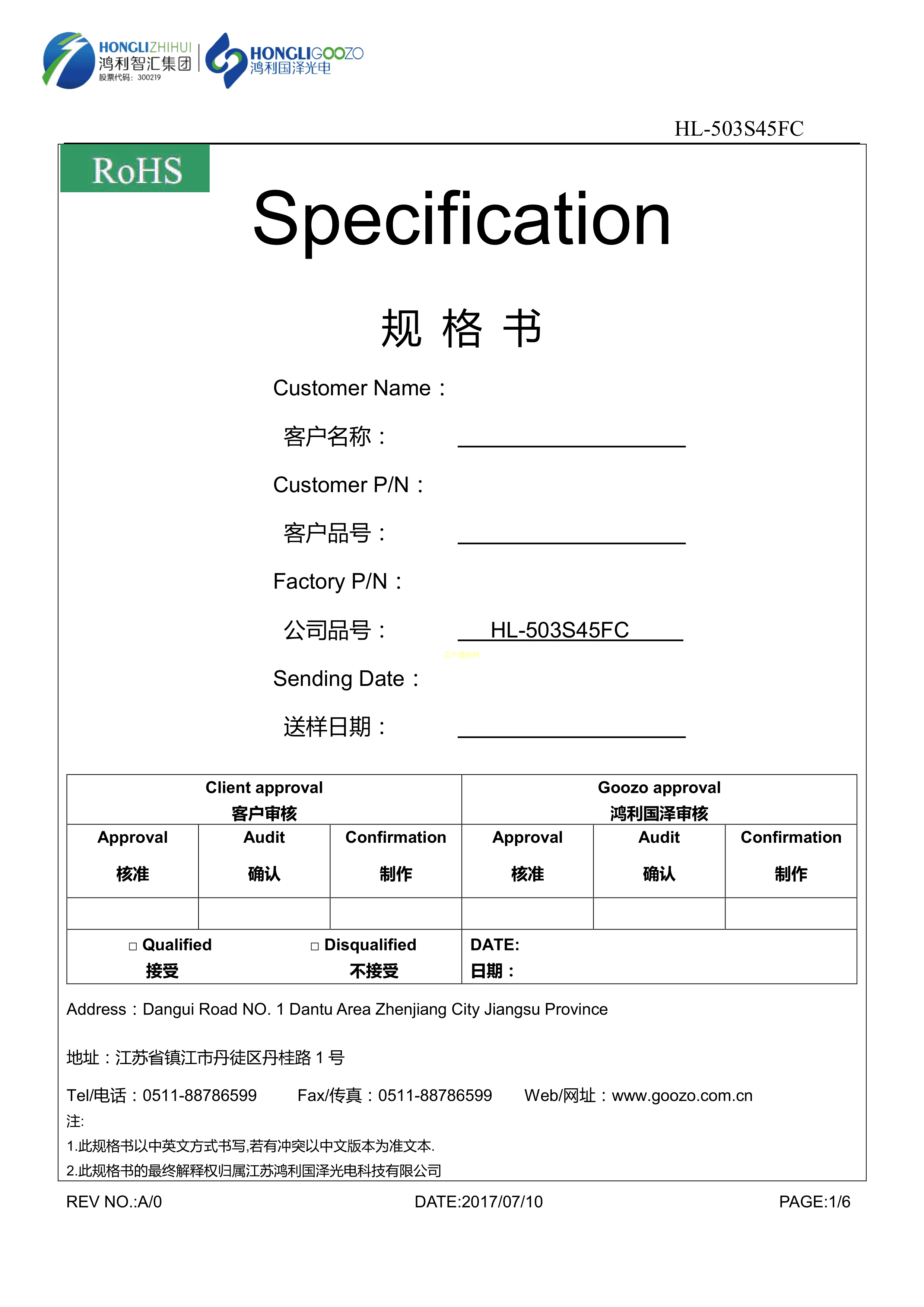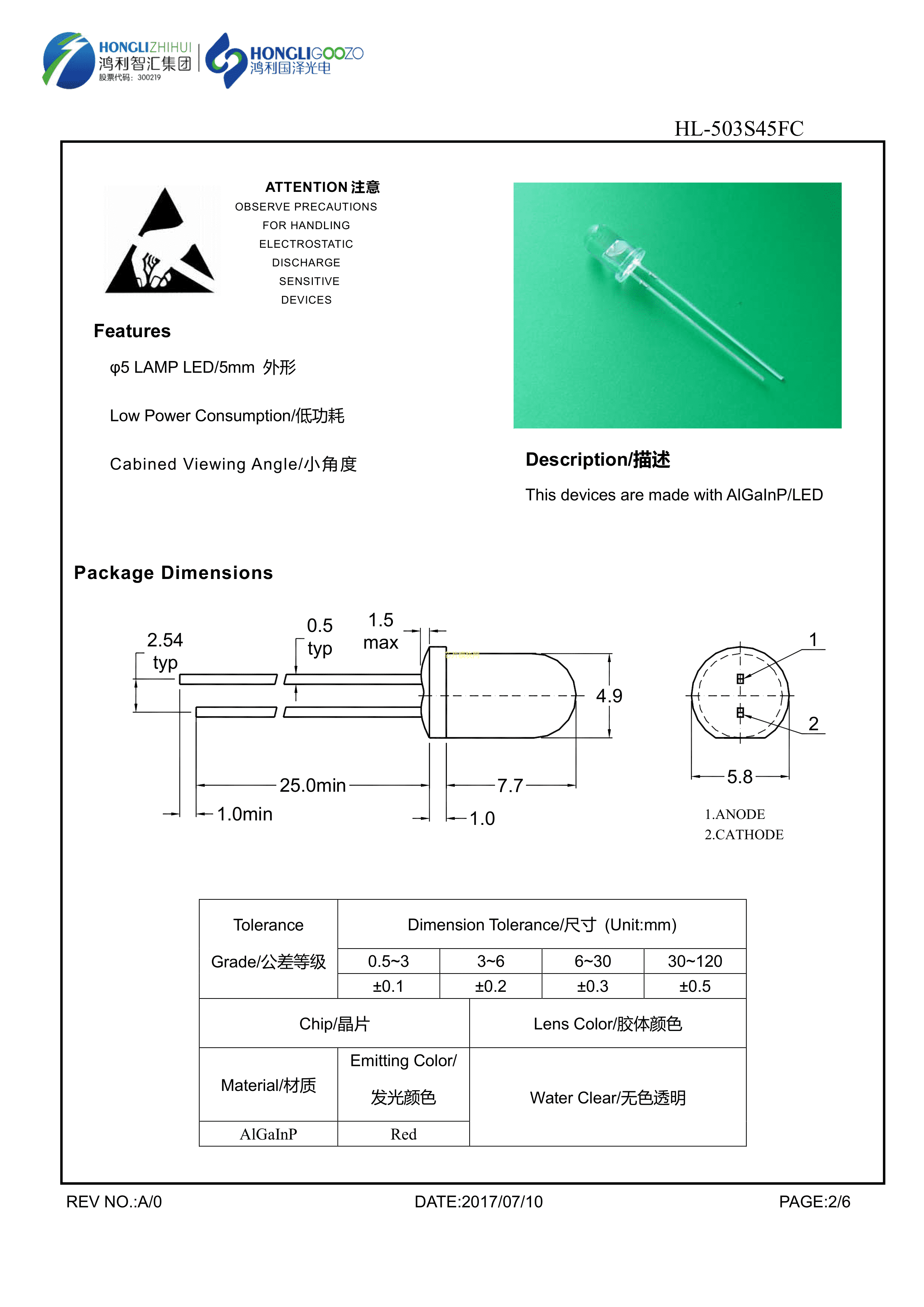 HL-503S45FC数据手册插件φ5mm封装HONGLITRONIC(鸿利光电)PDF规格书,中英文下载