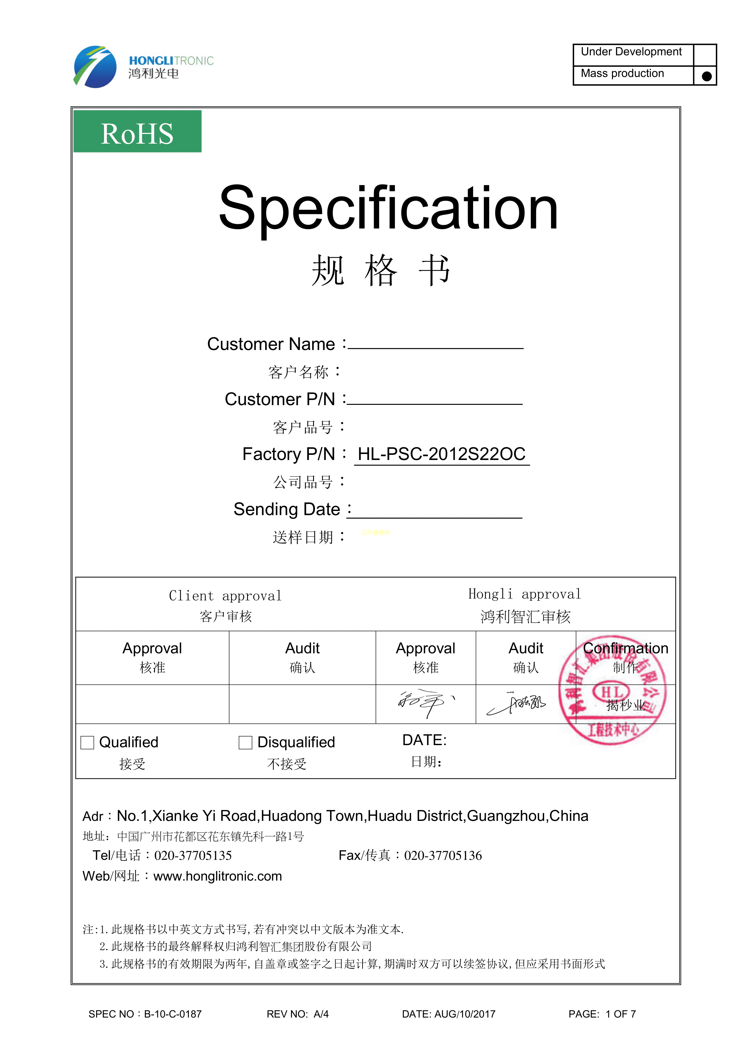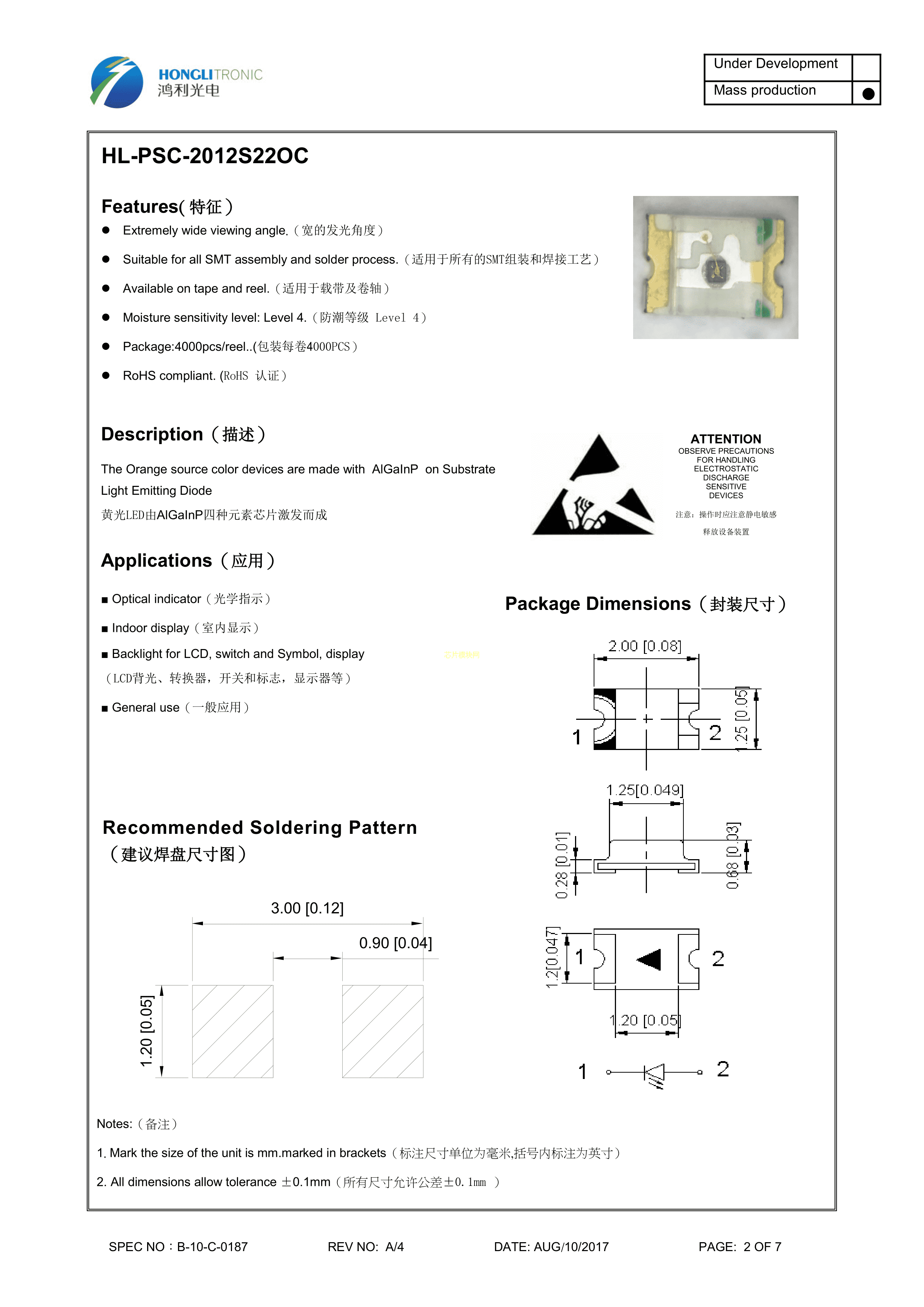 HL-PSC-2012S22OC数据手册SMD2.0x1.2x0.68mm封装HONGLITRONIC(鸿利光电)PDF规格书,中英文下载