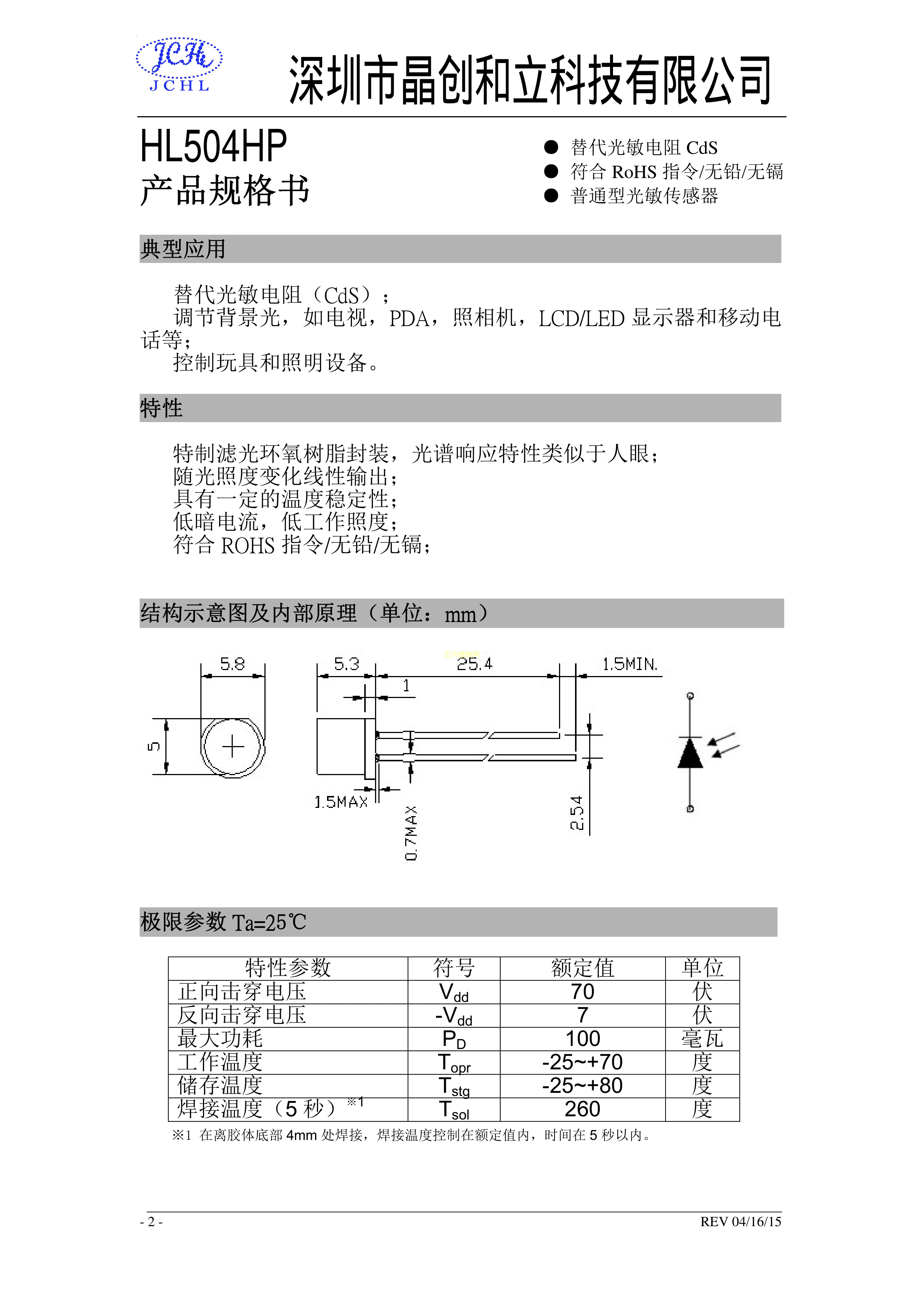 HL504HP数据手册ThroughHole封装JCHL(晶创和立)PDF规格书,中英文下载
