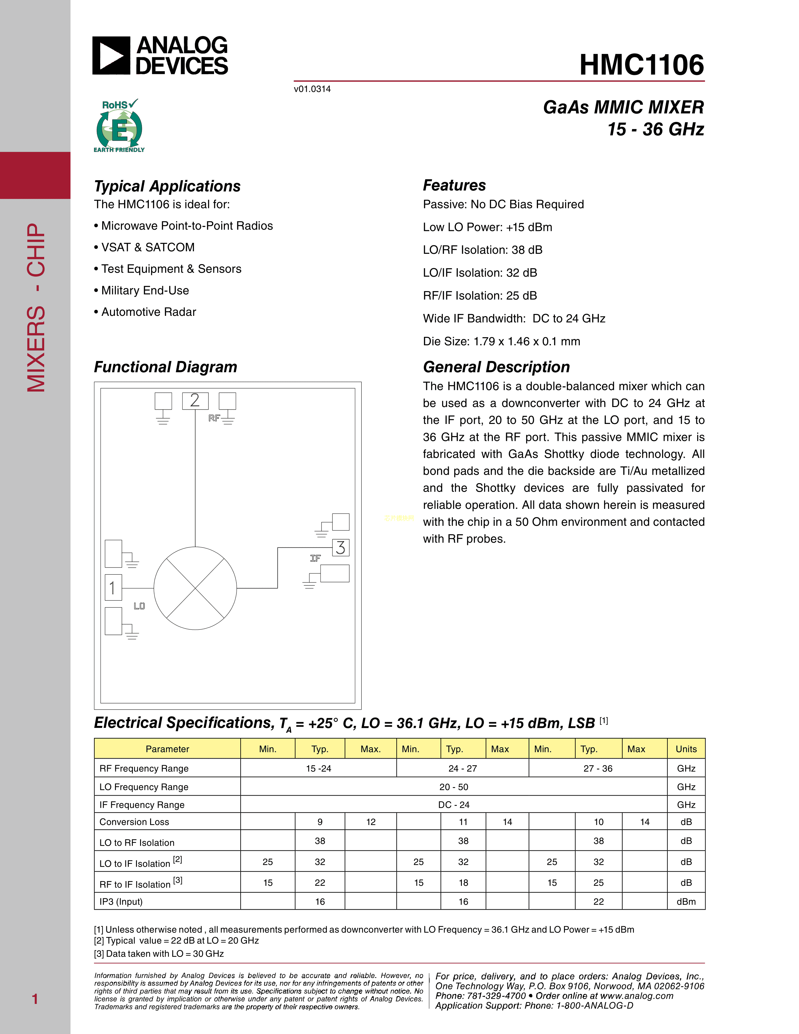 HMC1106数据手册Chip封装ADI(亚德诺)-LINEARPDF规格书,中英文下载