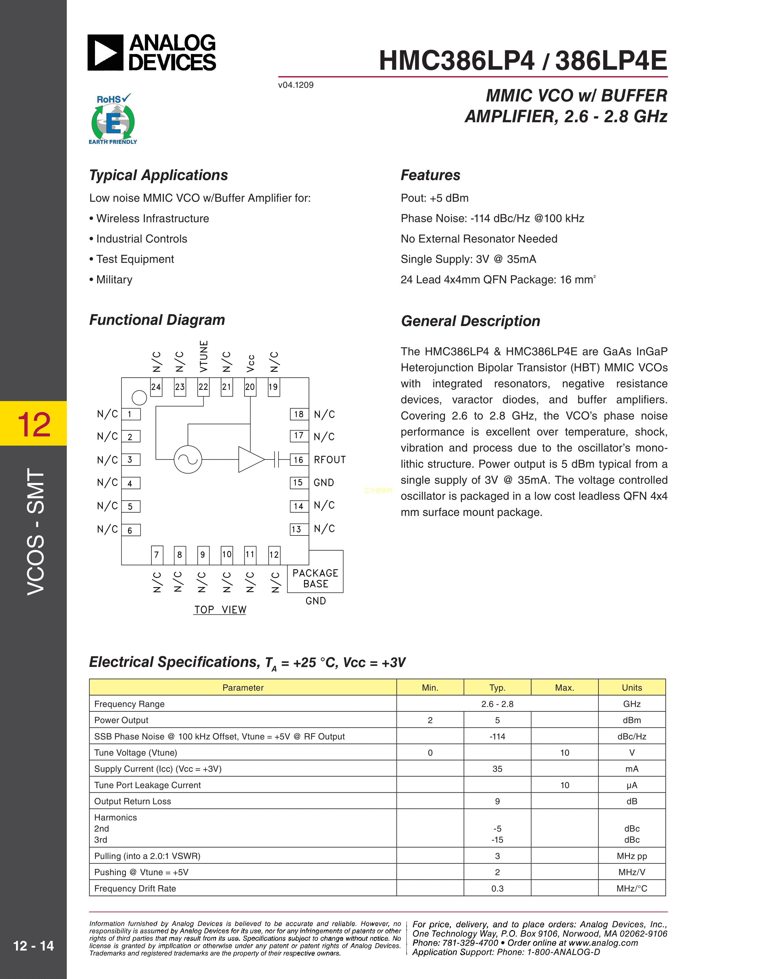 HMC386LP4E数据手册QFN-24(4x4)封装ADI(亚德诺)-LINEARPDF规格书,中英文下载