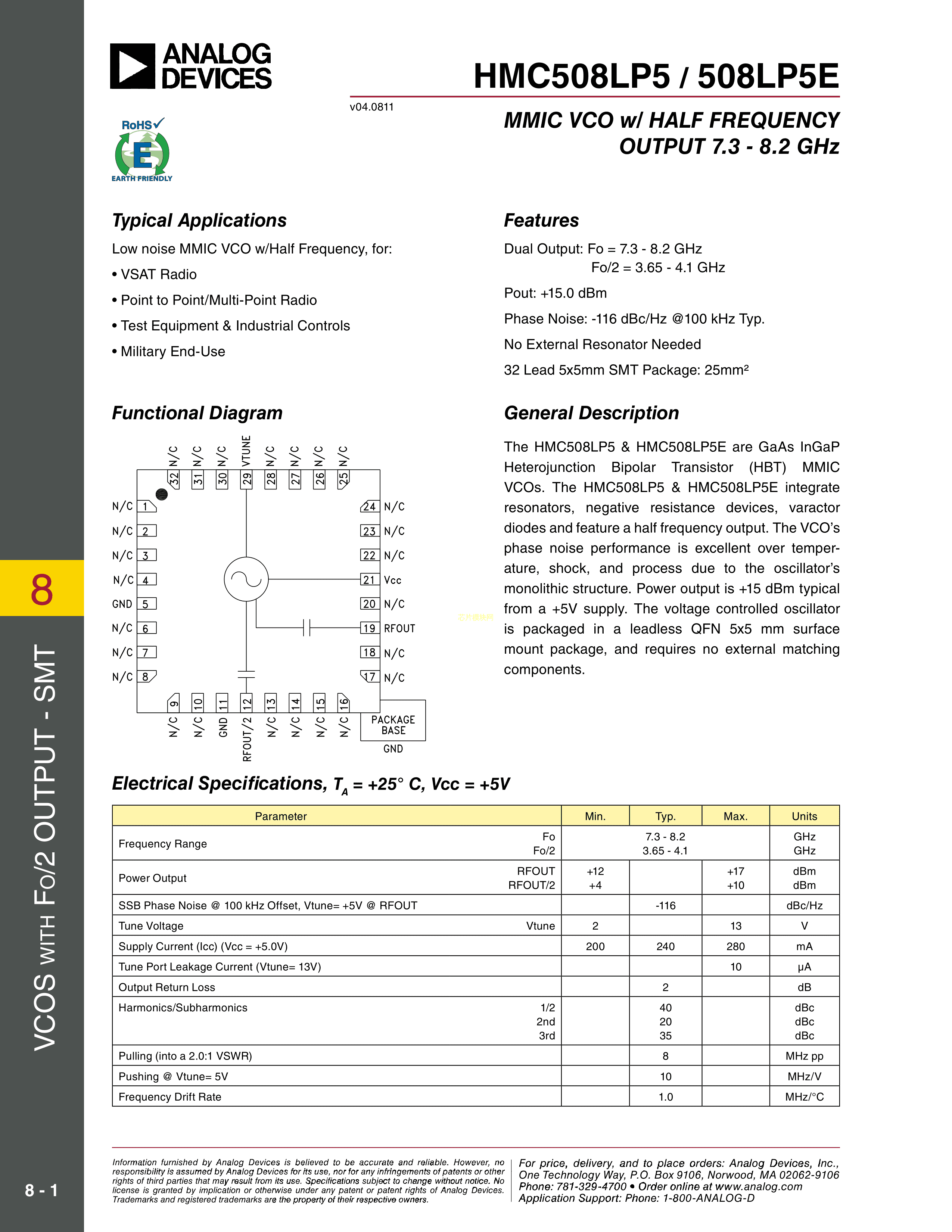 HMC508LP5ETR数据手册QFN-32封装ADI(亚德诺)-LINEARPDF规格书,中英文下载