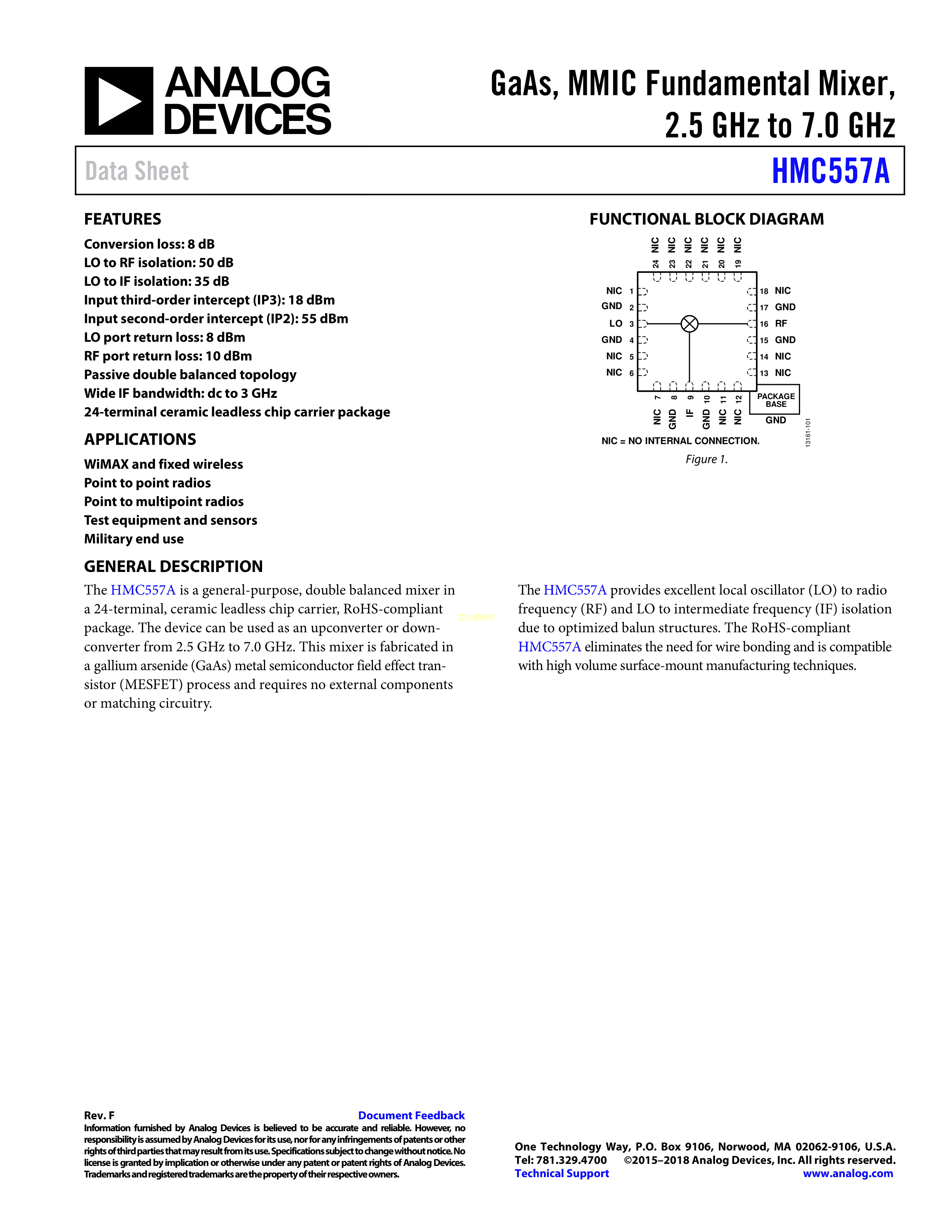 HMC557ALC4TR-R5数据手册CLCC-24封装ADI(亚德诺)-LINEARPDF规格书,中英文下载