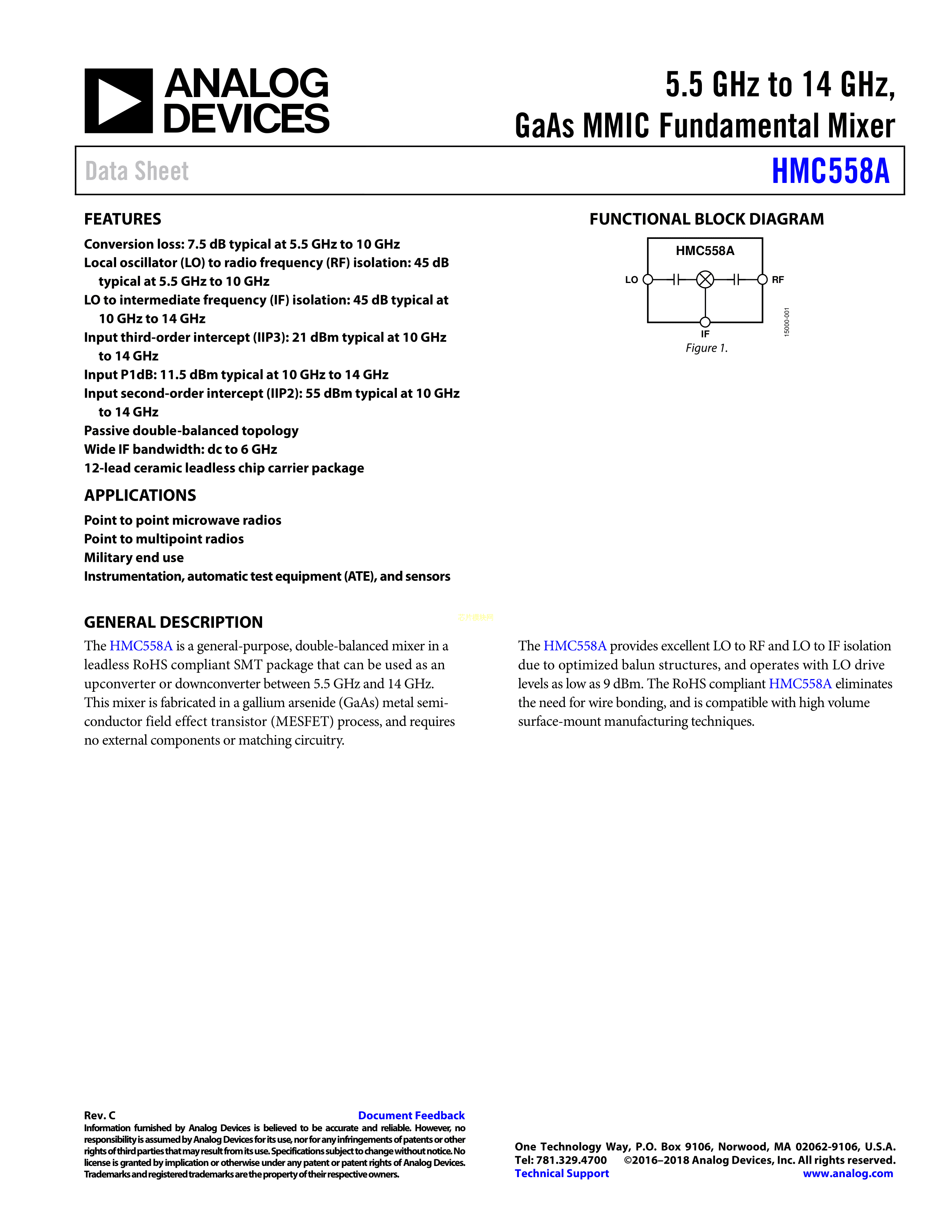 HMC558ALC3BTR-R5数据手册CLCC-12封装ADI(亚德诺)-LINEARPDF规格书,中英文下载