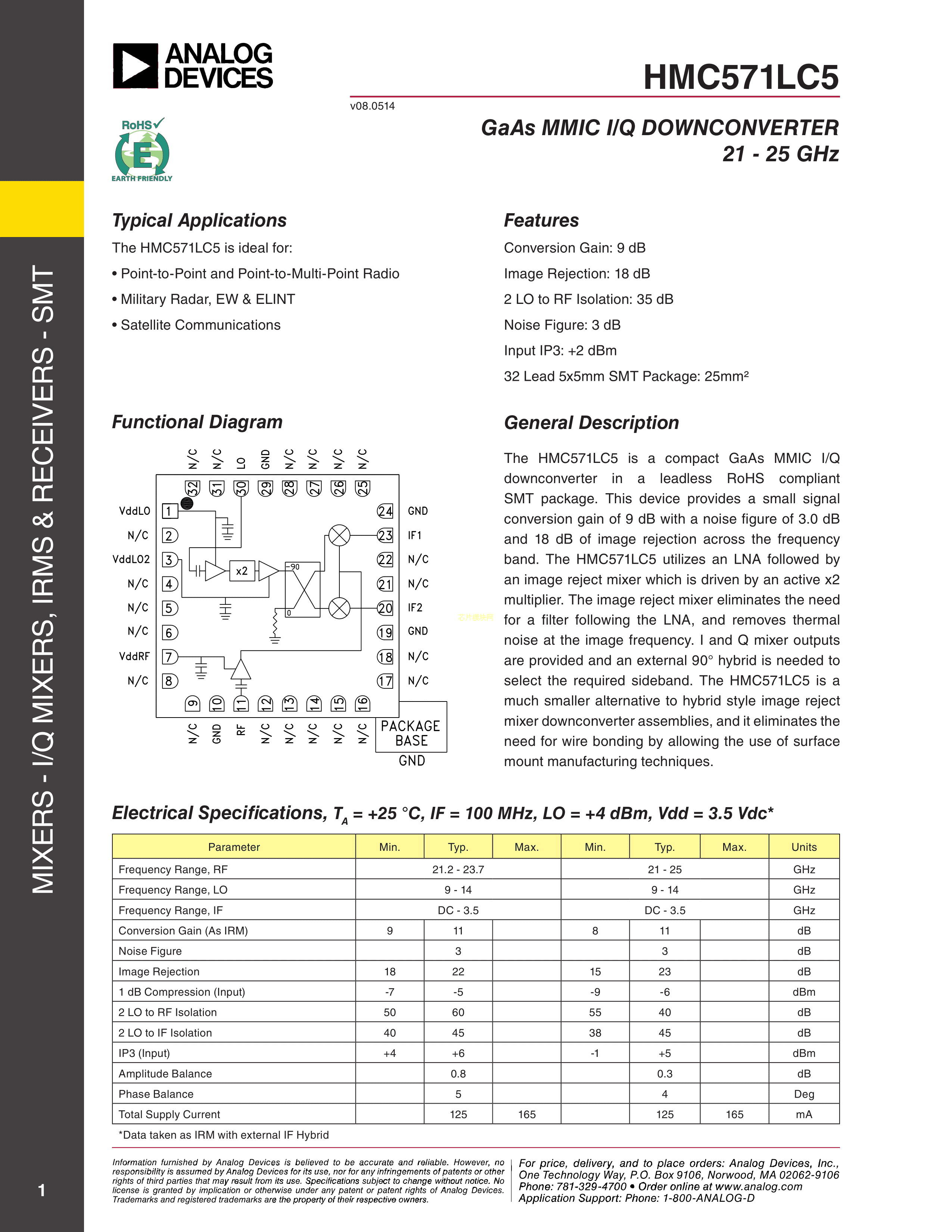 HMC571LC5TR-R5数据手册SMT-32(5x5)封装ADI(亚德诺)-LINEARPDF规格书,中英文下载