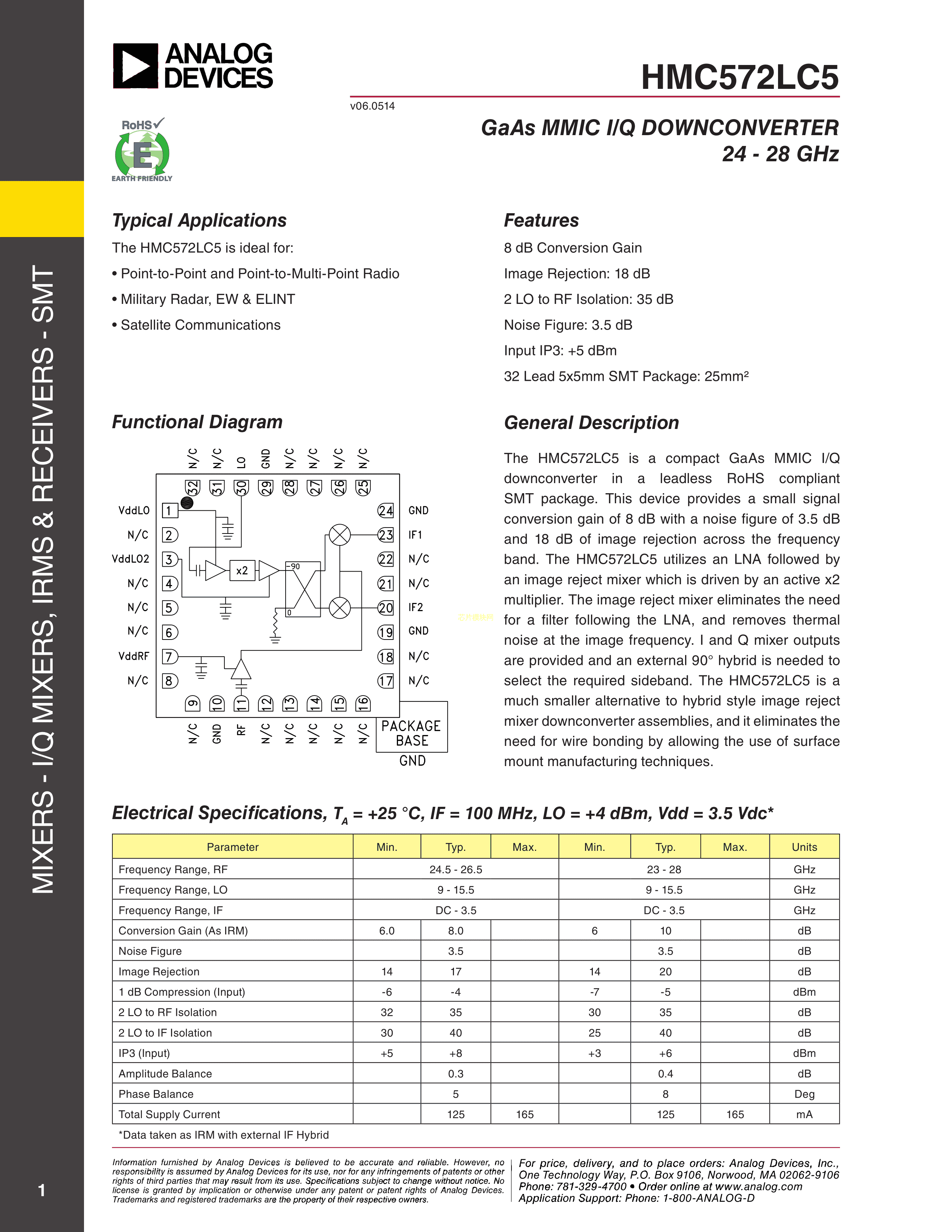 HMC572LC5TR数据手册SMT-32(5x5)封装ADI(亚德诺)-LINEARPDF规格书,中英文下载