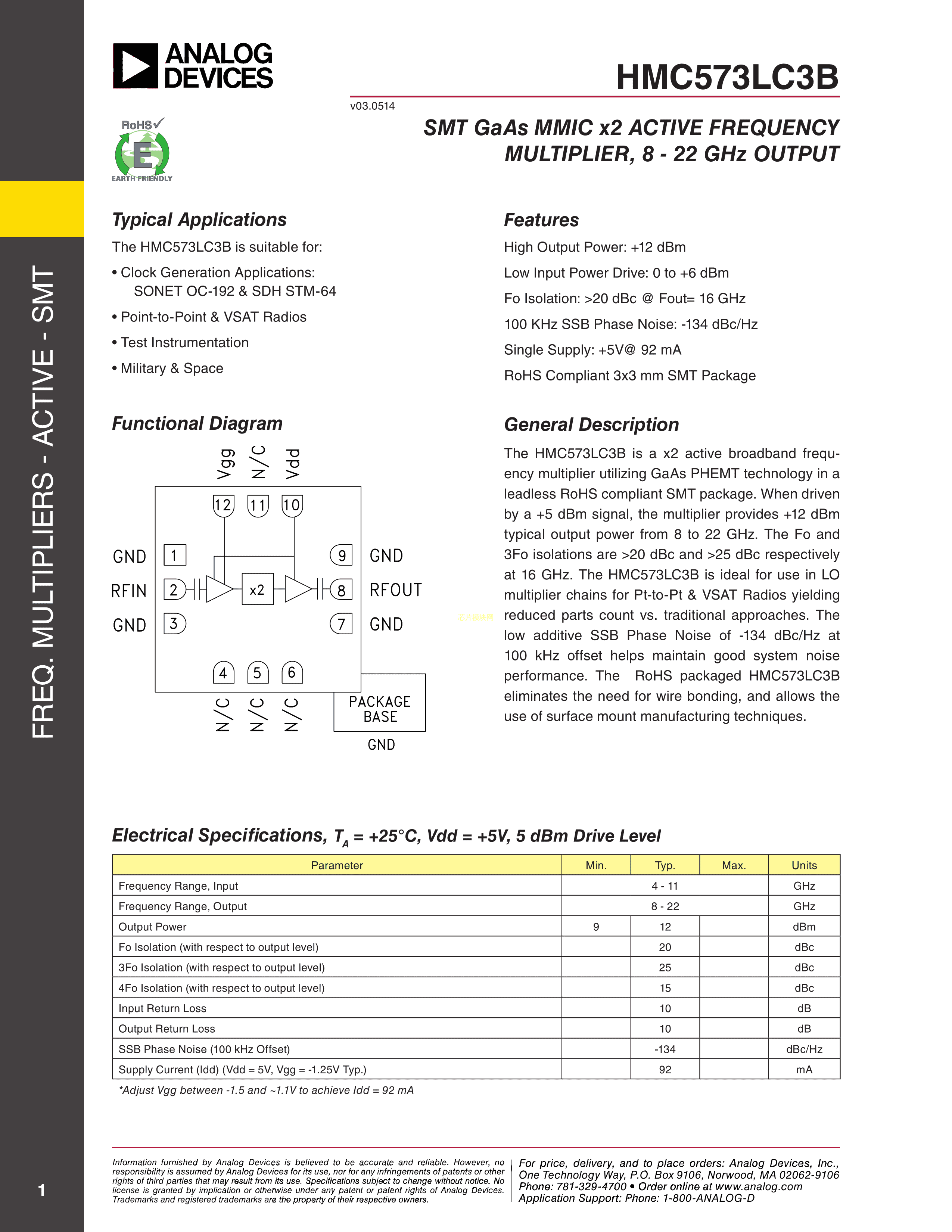 HMC573LC3BTR数据手册STM-12(3x3)封装ADI(亚德诺)-LINEARPDF规格书,中英文下载