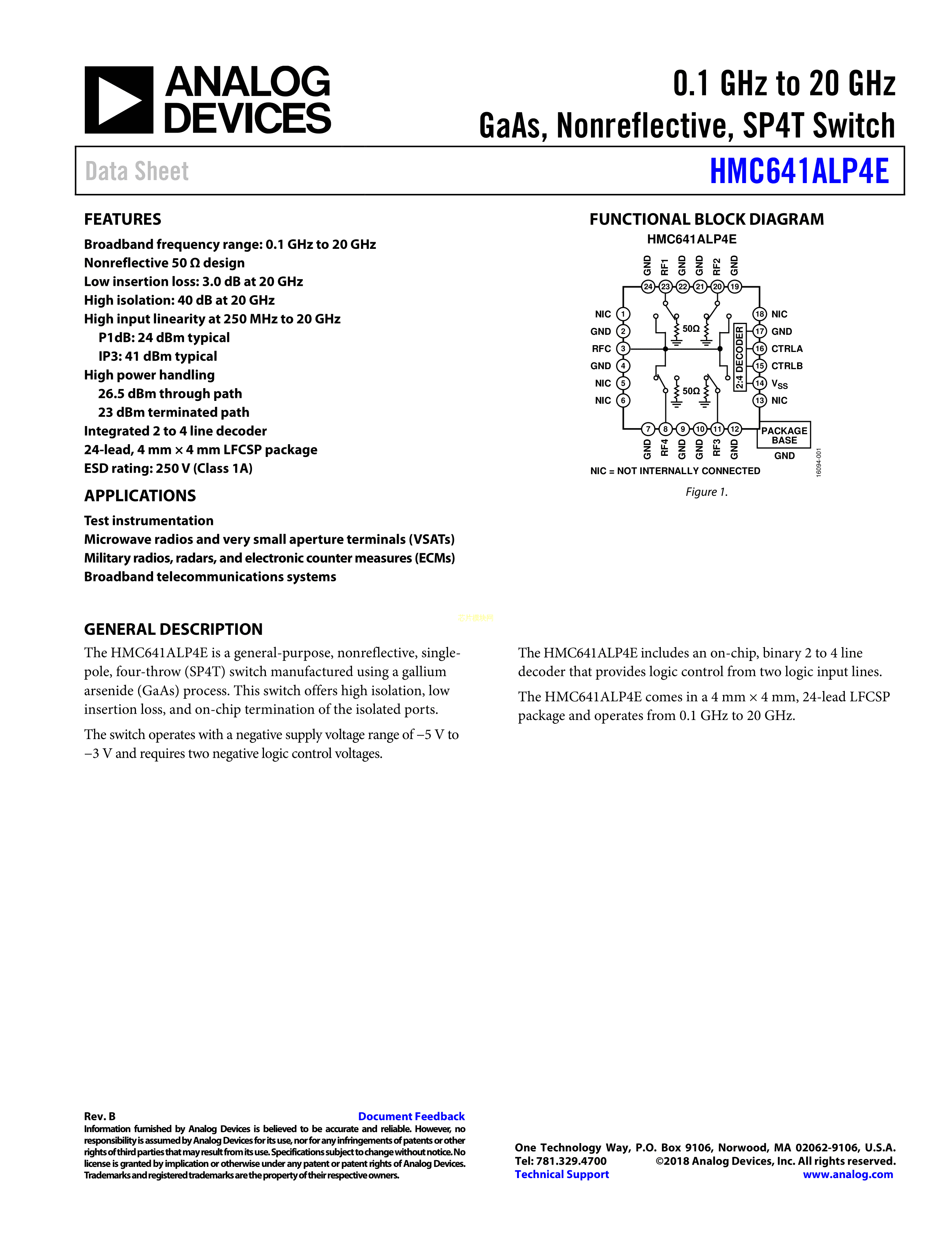 HMC641ALP4E数据手册QFN-24封装ADI(亚德诺)-LINEARPDF规格书,中英文下载