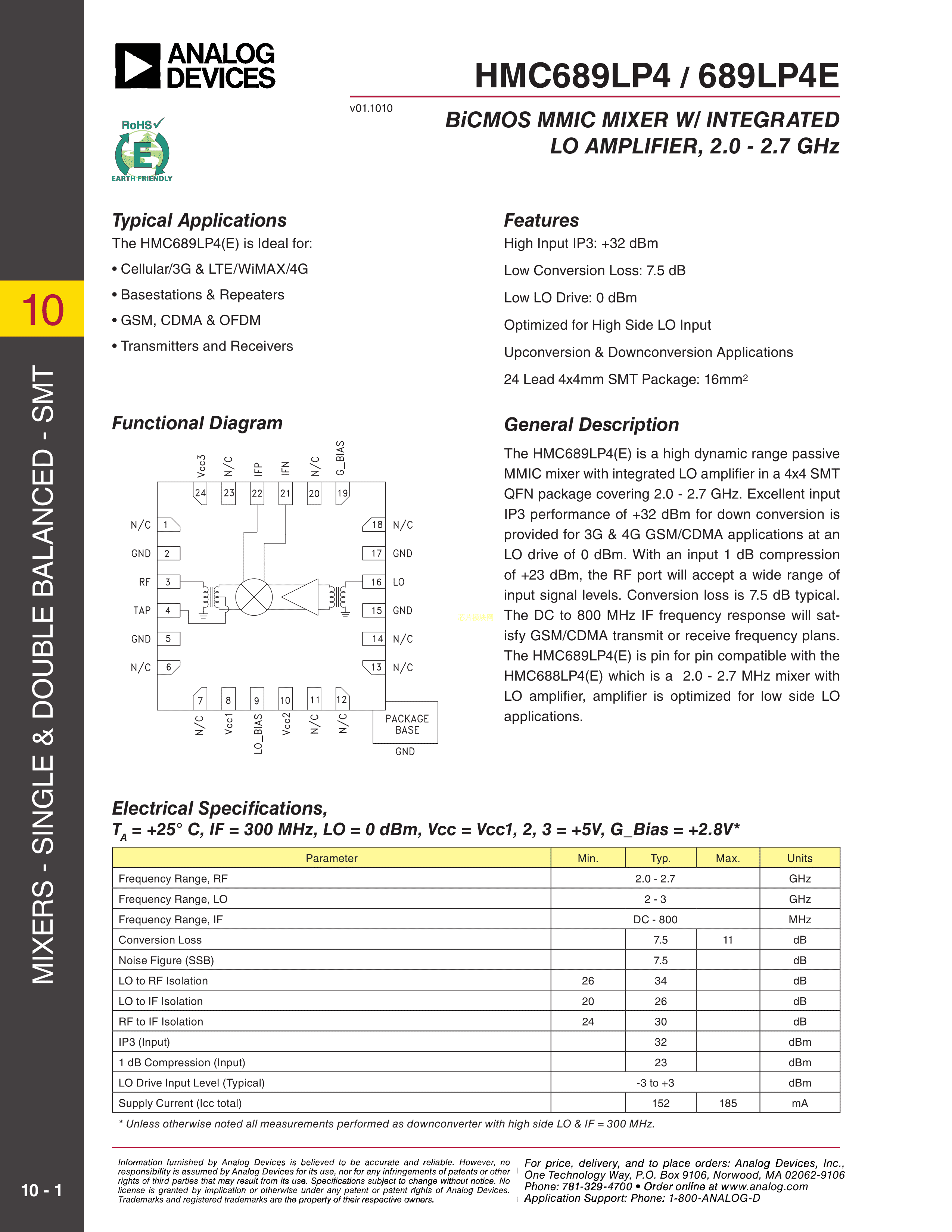 HMC689LP4ETR数据手册SMT-24(4x4)封装ADI(亚德诺)-LINEARPDF规格书,中英文下载