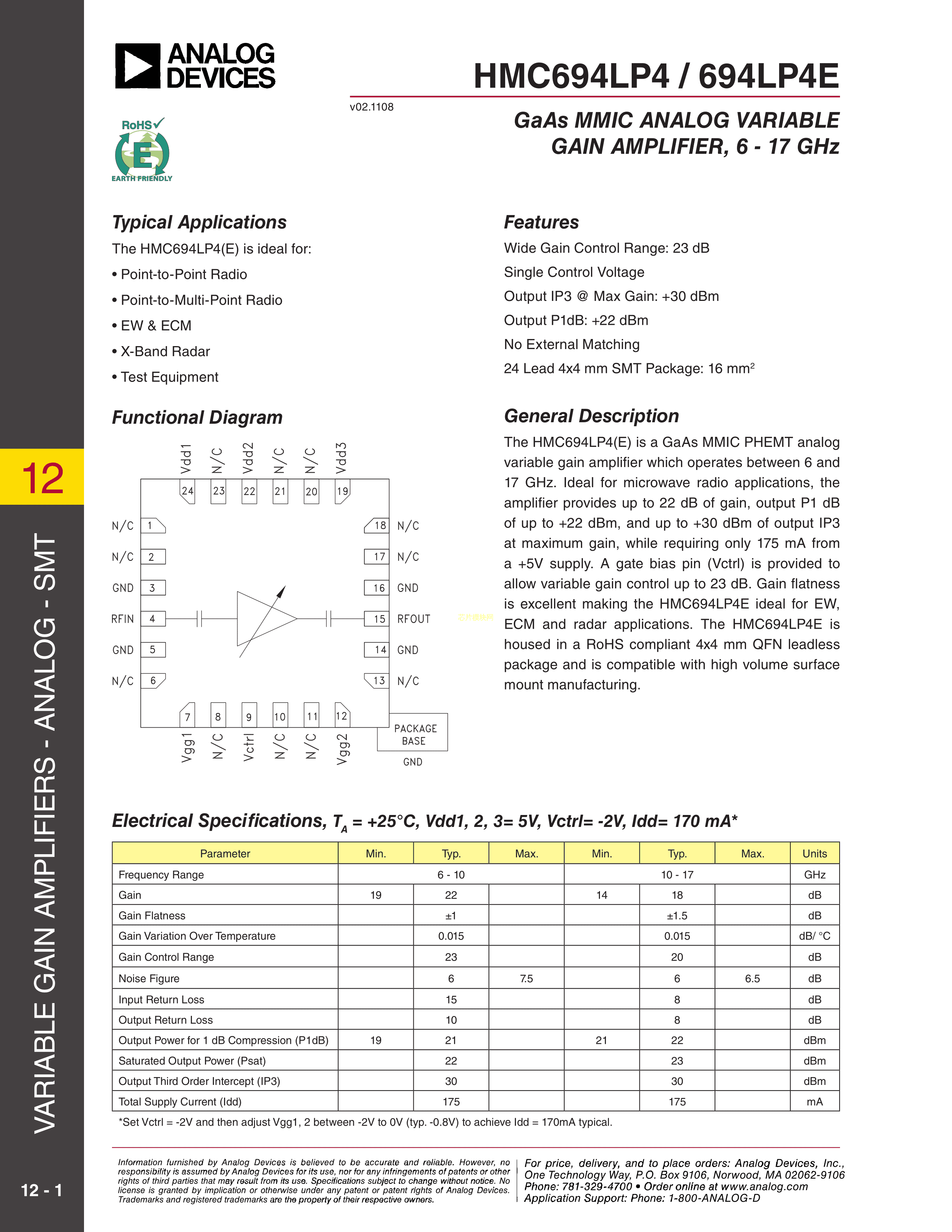 HMC694LP4ETR数据手册QFN-24(4x4)封装ADI(亚德诺)-LINEARPDF规格书,中英文下载