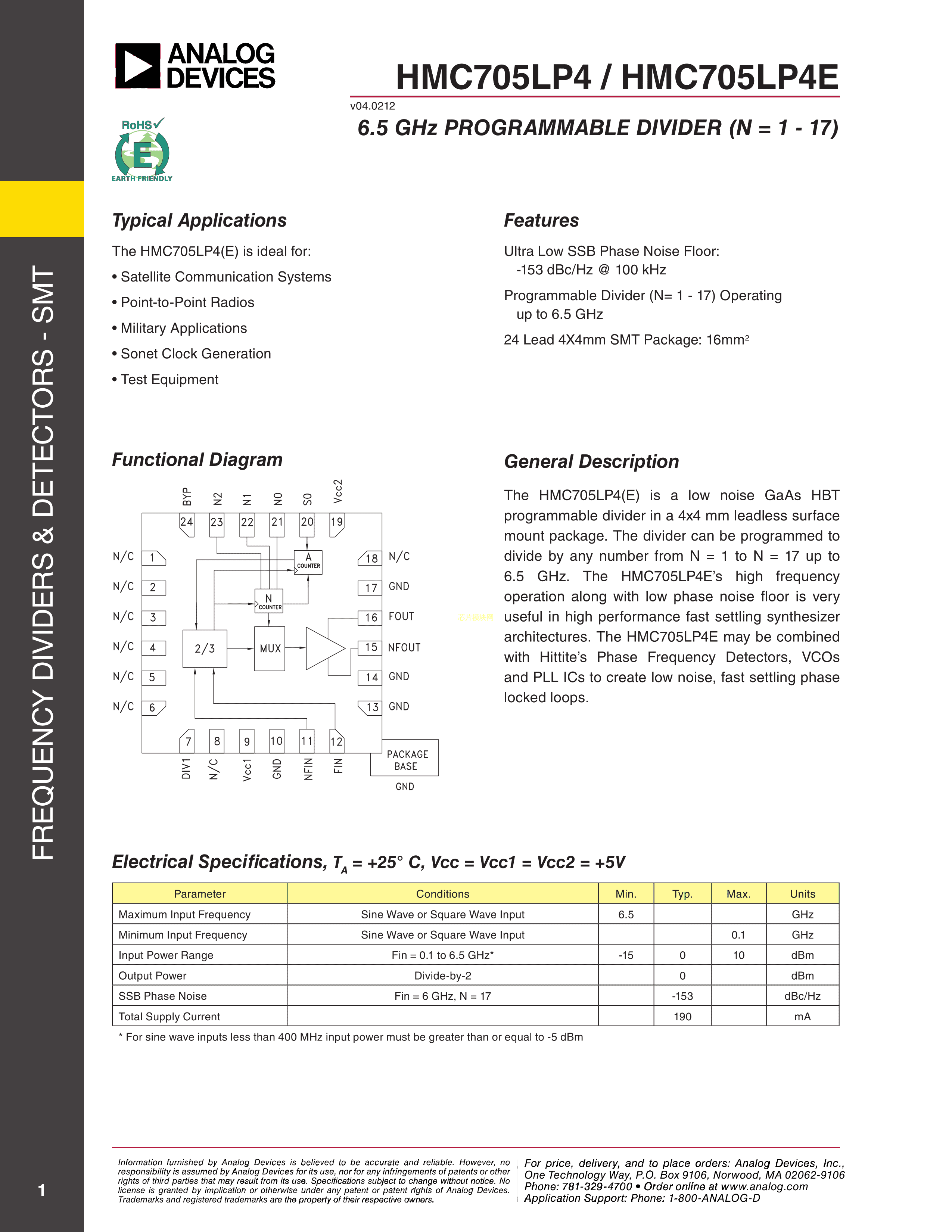 HMC705LP4ETR数据手册SMT-24(4x4)封装ADI(亚德诺)-LINEARPDF规格书,中英文下载