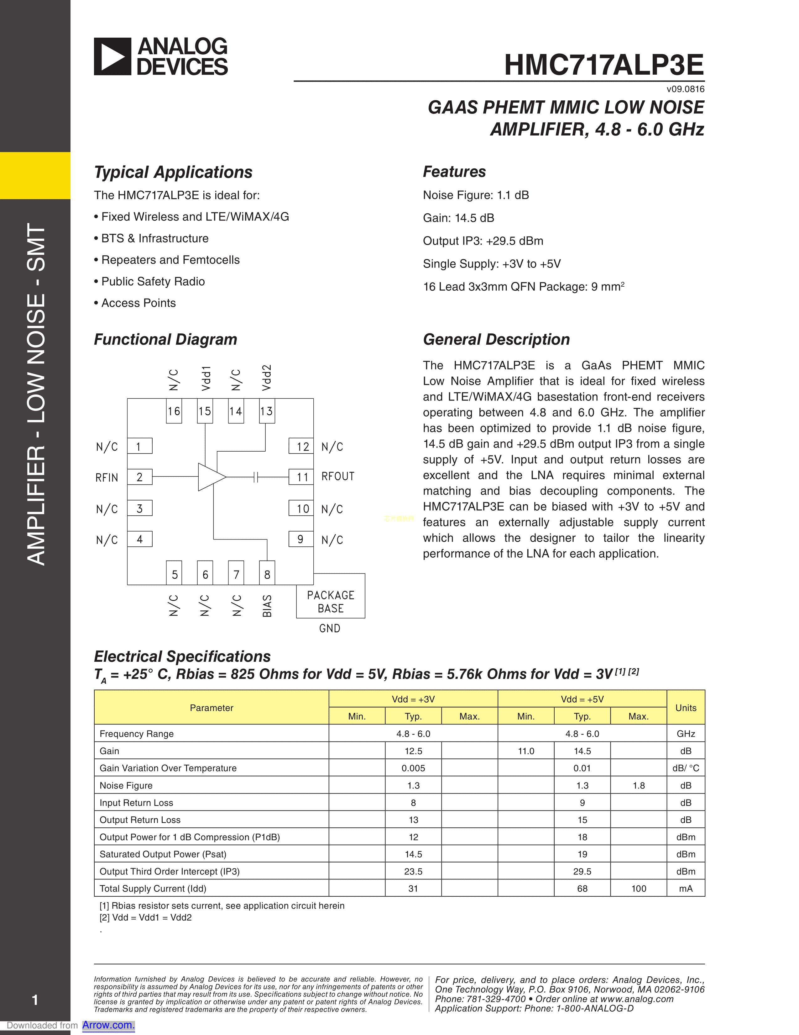 HMC717ALP3ETR数据手册QFN-16封装ADI(亚德诺)-LINEARPDF规格书,中英文下载