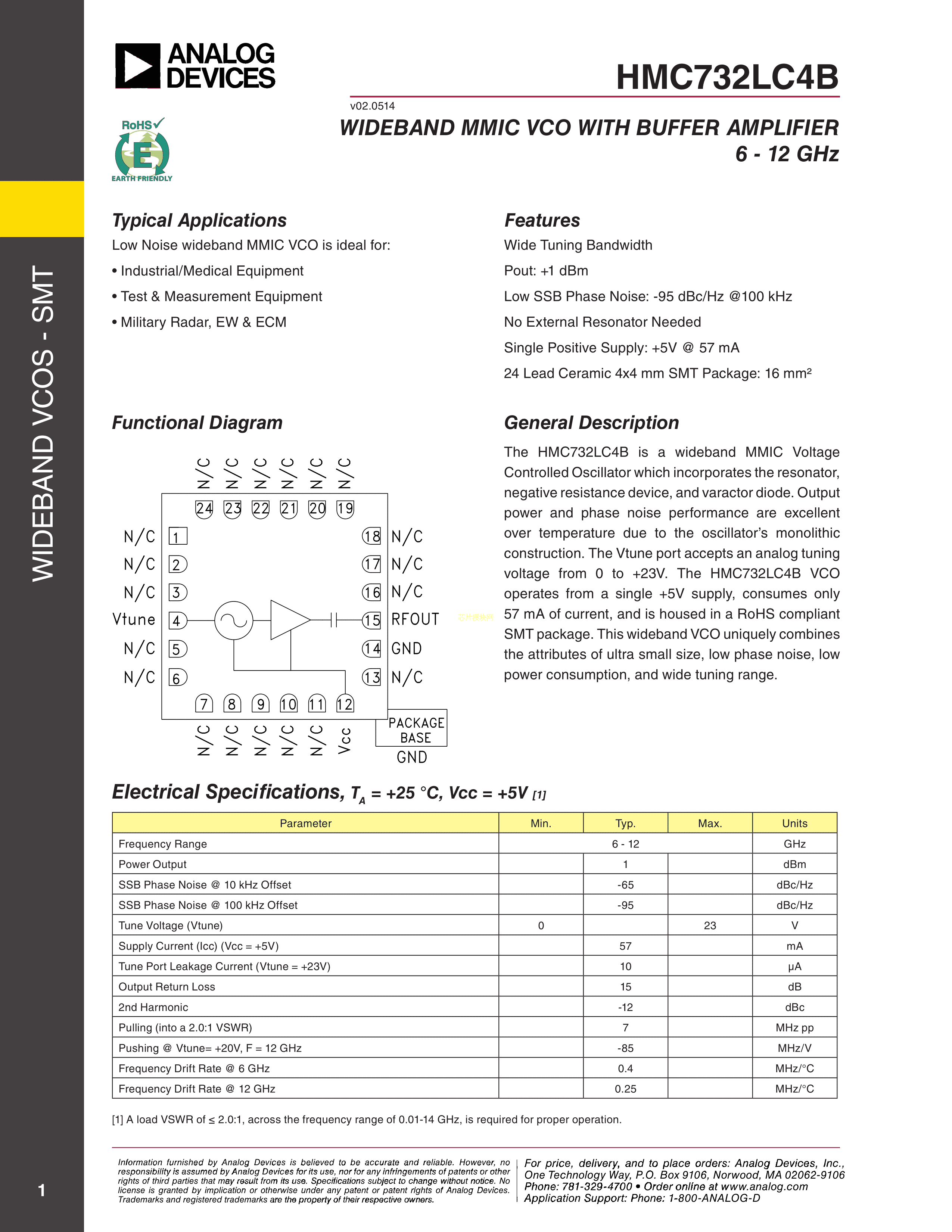 HMC732LC4BTR数据手册CSTM-24(4x4)封装ADI(亚德诺)-LINEARPDF规格书,中英文下载