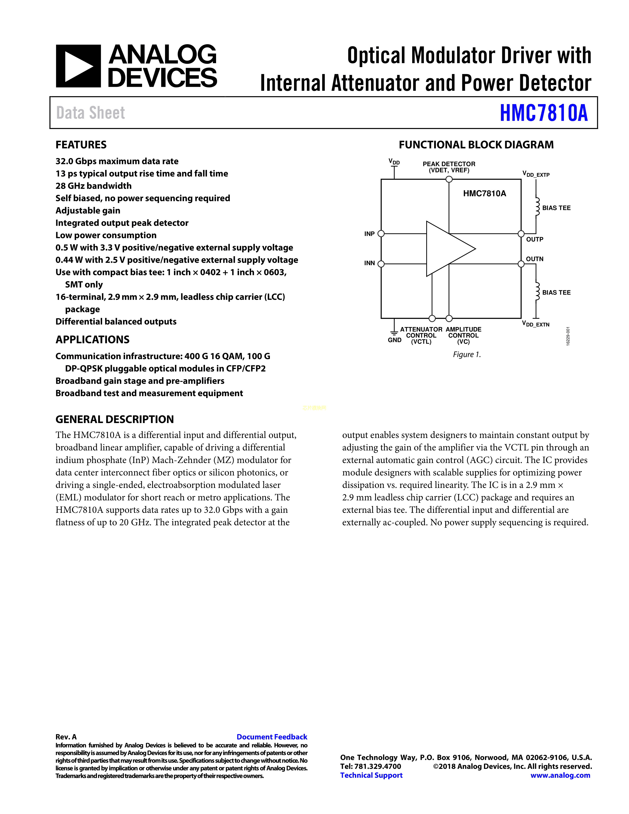HMC7810ALC3TR数据手册CLCC-16封装ADI(亚德诺)-LINEARPDF规格书,中英