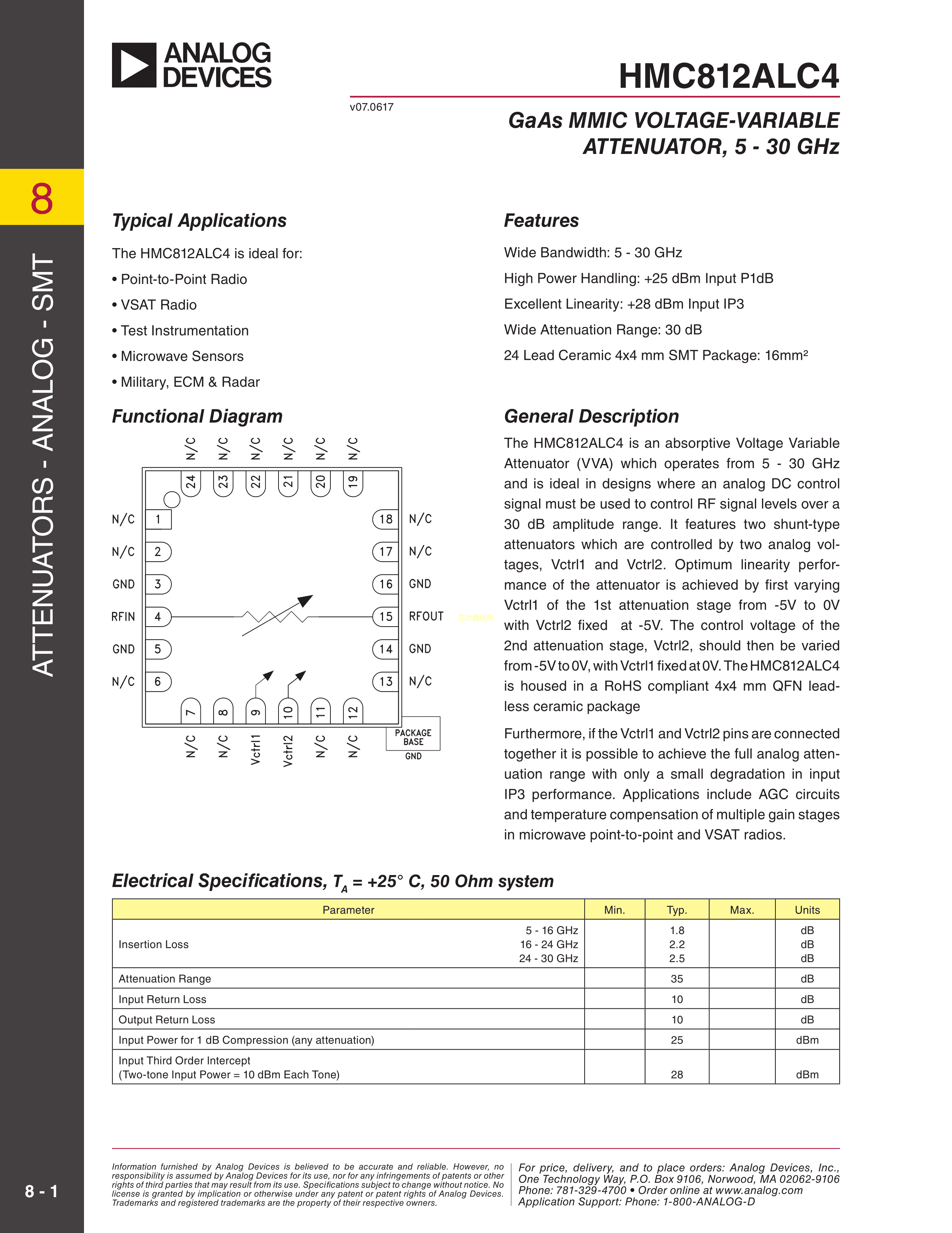 HMC812ALC4TR数据手册CSTM-24(4x4)封装ADI(亚德诺)-LINEARPDF规格书,中英文下载