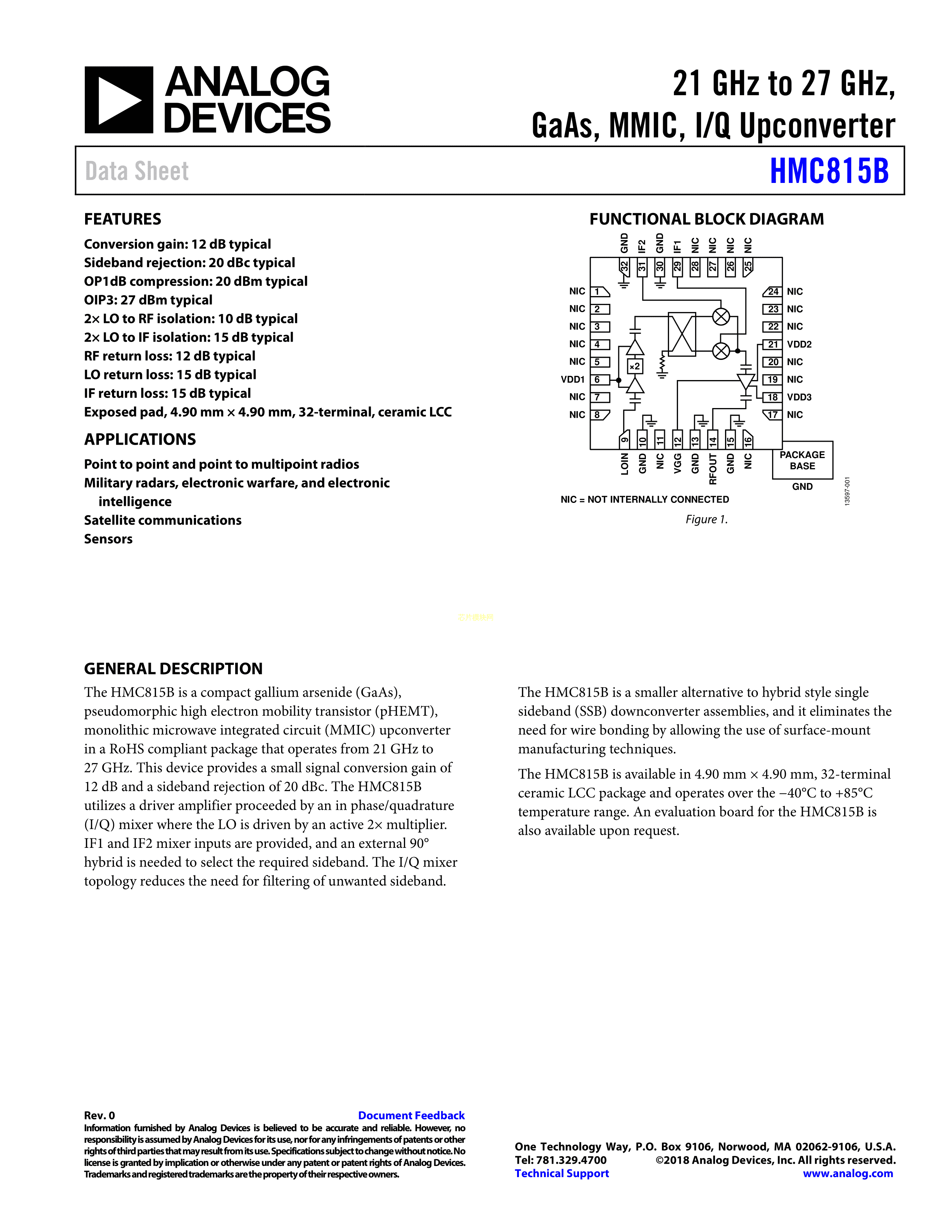 HMC815BLC5TR数据手册LCC-32封装ADI(亚德诺)-LINEARPDF规格书,中英文下载