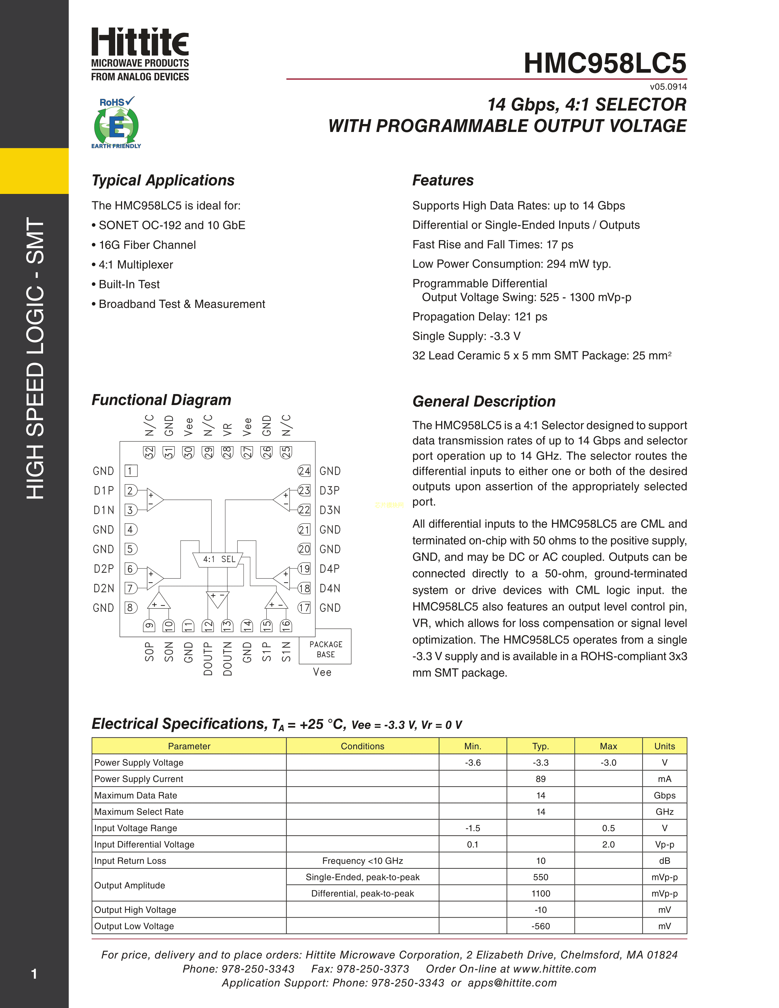 HMC958LC5TR-R5数据手册CSMT-32(5x5)封装ADI(亚德诺)-LINEARPDF