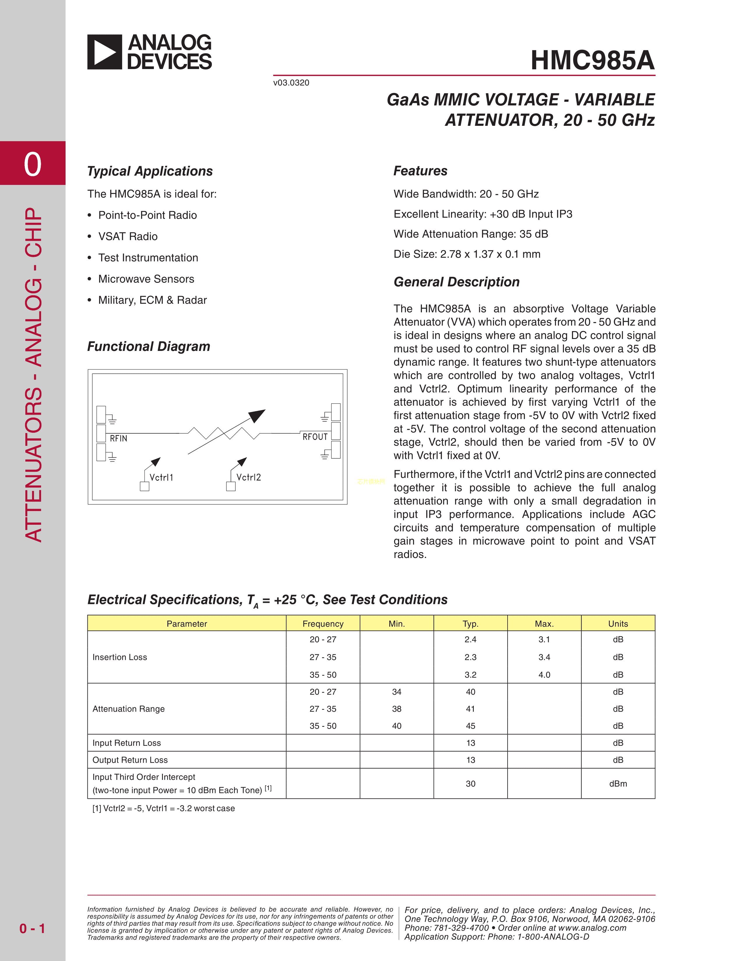 HMC985A-SX数据手册SMT-24封装ADI(亚德诺)-LINEARPDF规格书,中英文下载