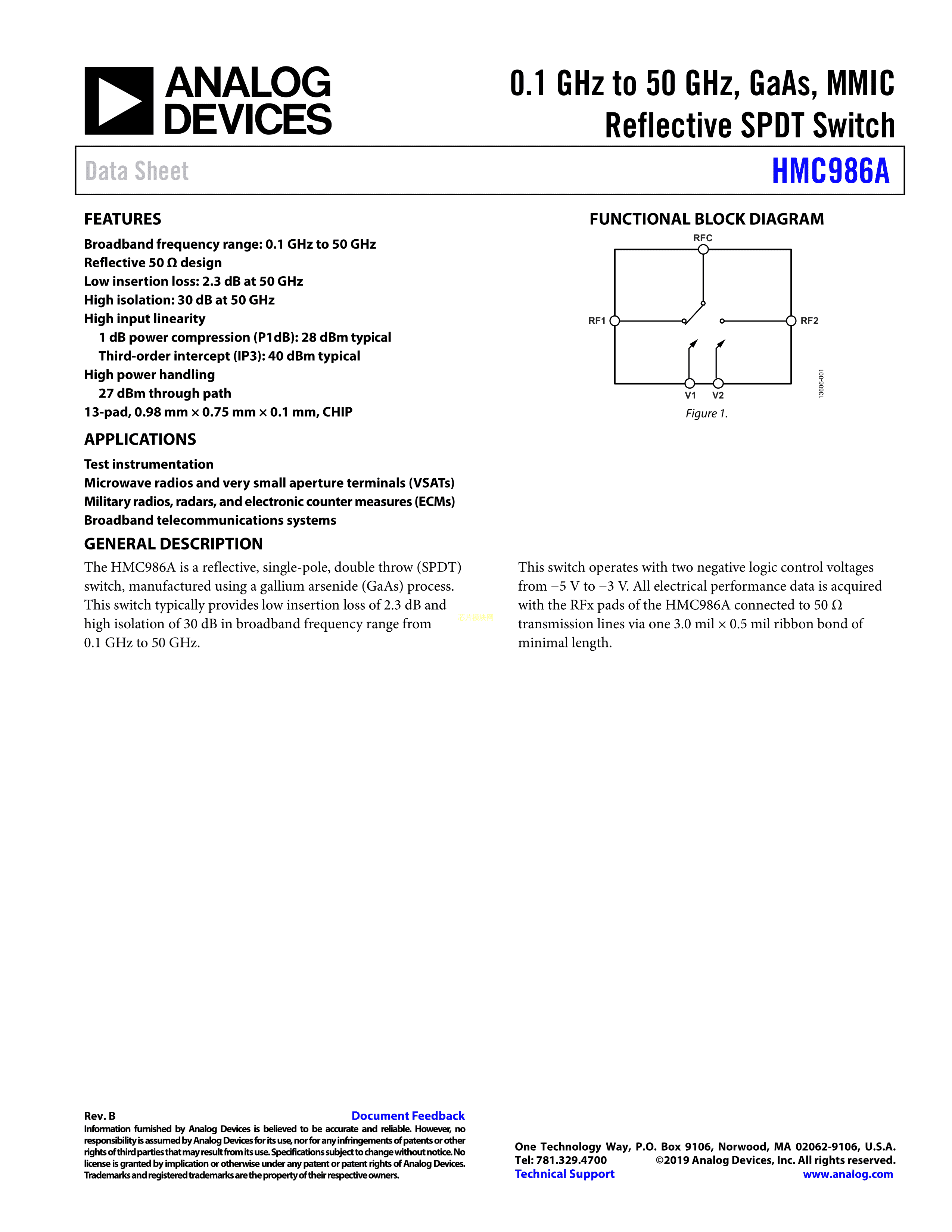 HMC986A数据手册SMD封装ADI(亚德诺)-LINEARPDF规格书,中英文下载