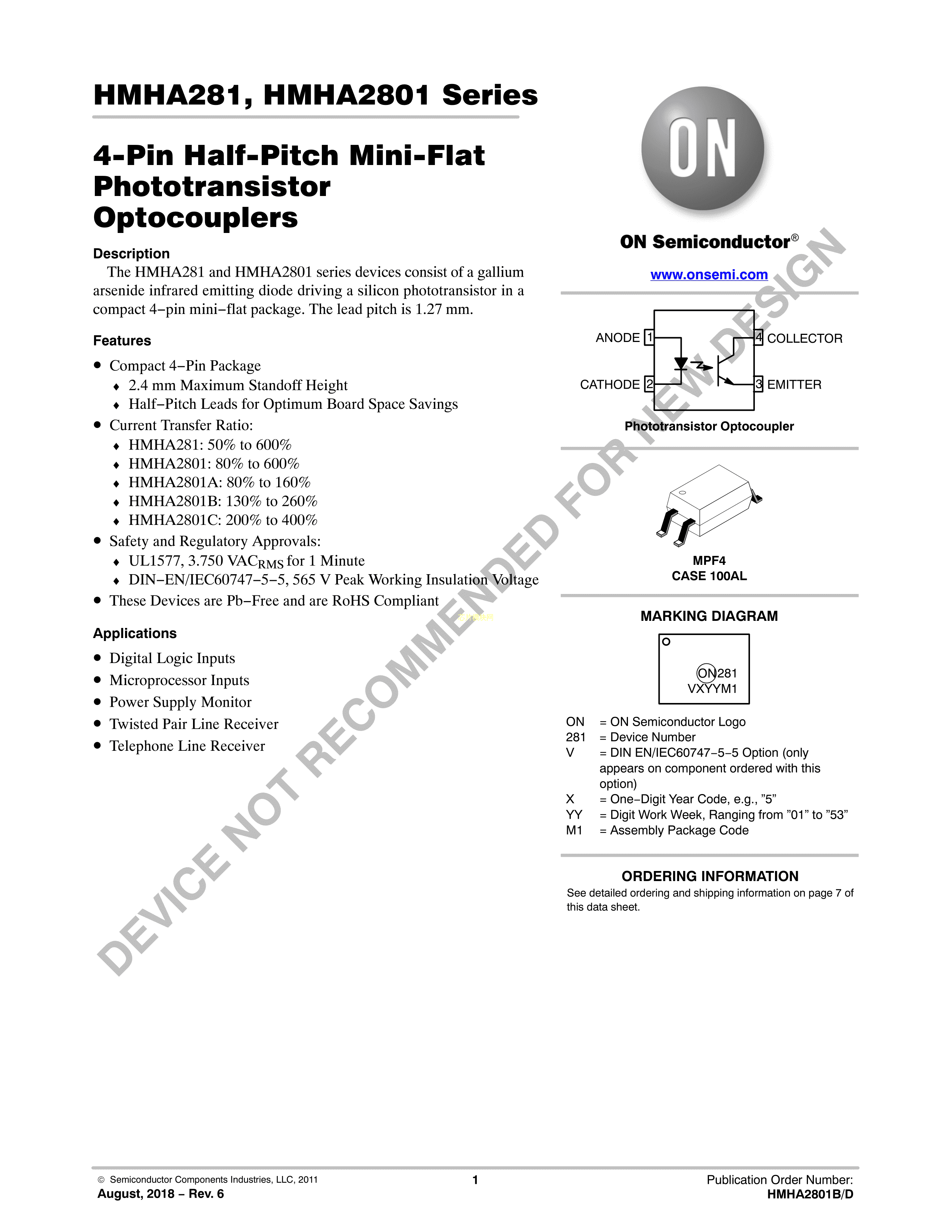 HMHA2801BR2数据手册MPF-4封装onsemi(安森美)PDF规格书,中英文下载