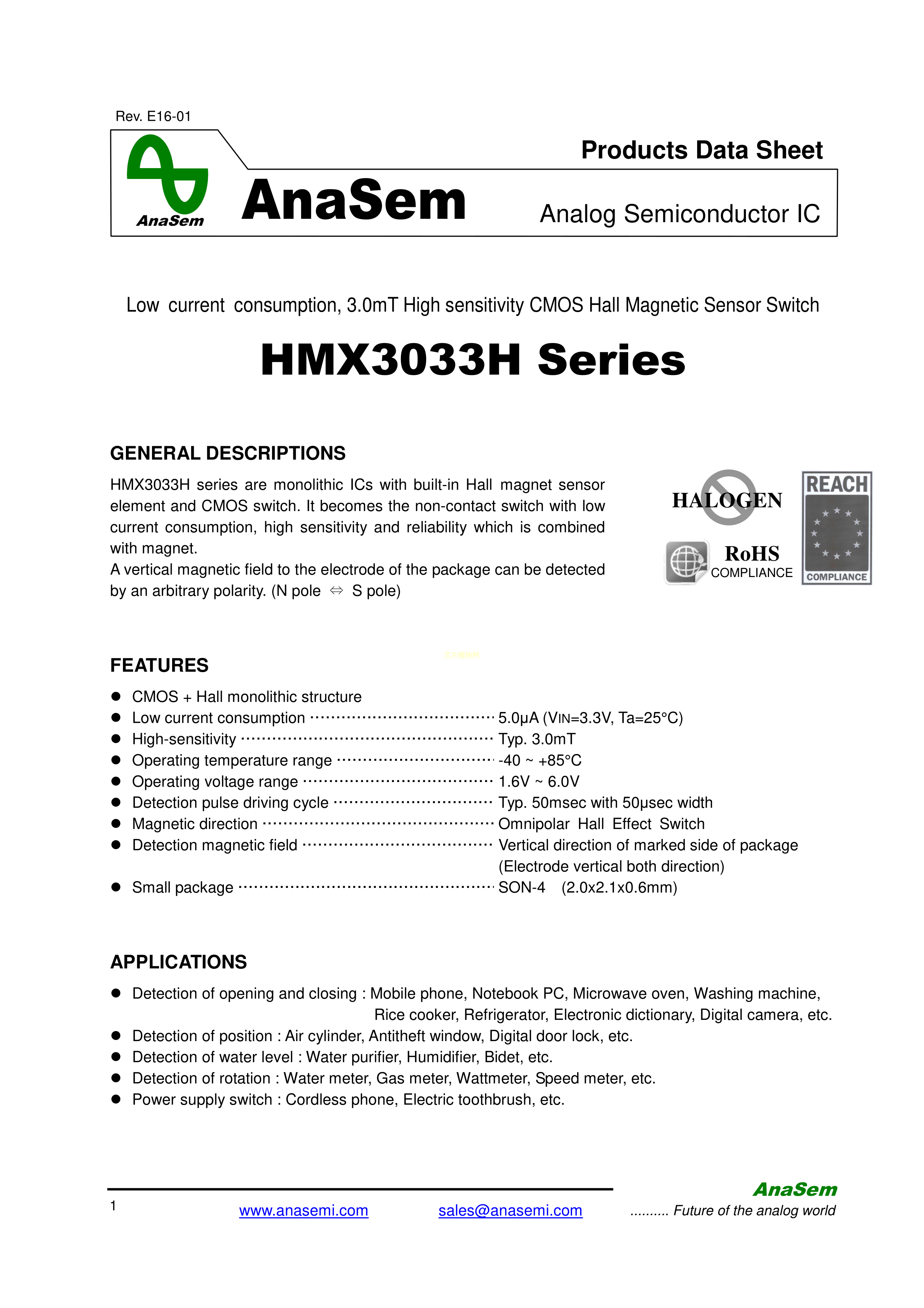 HMX3033HNA数据手册SON-4封装AnaSem(安纳森)PDF规格书,中英文下载