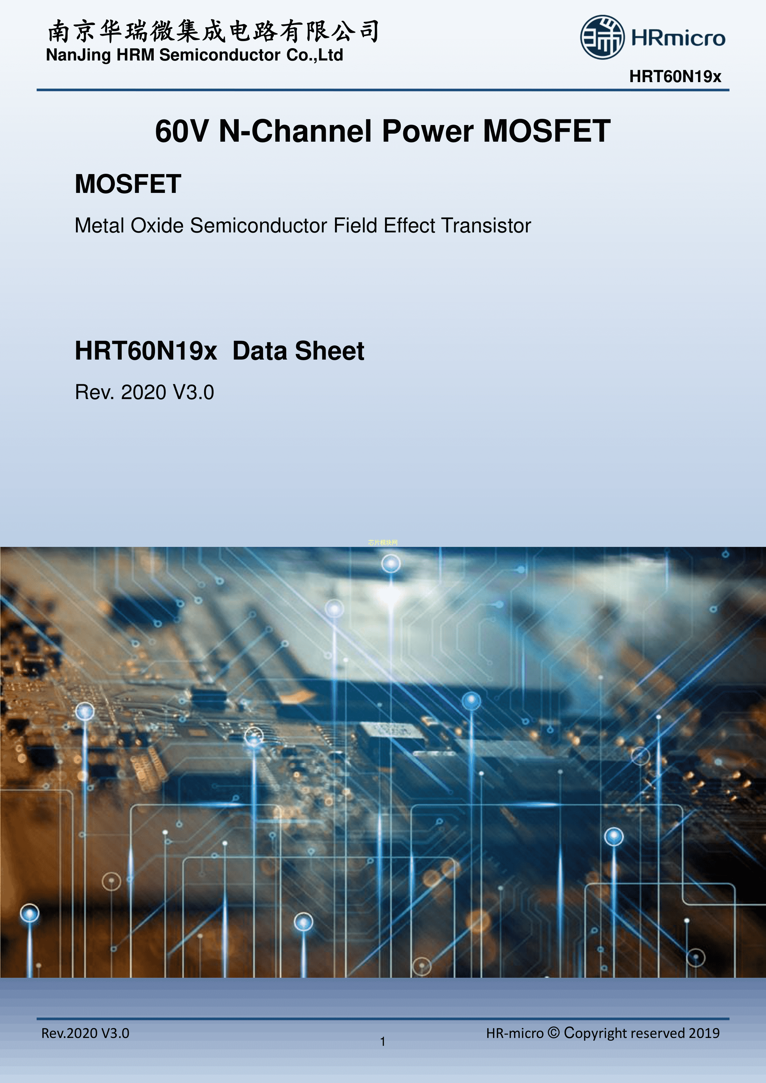 HRT60N19D数据手册TO-252封装HRmicro(华瑞微)PDF规格书,中英文下载