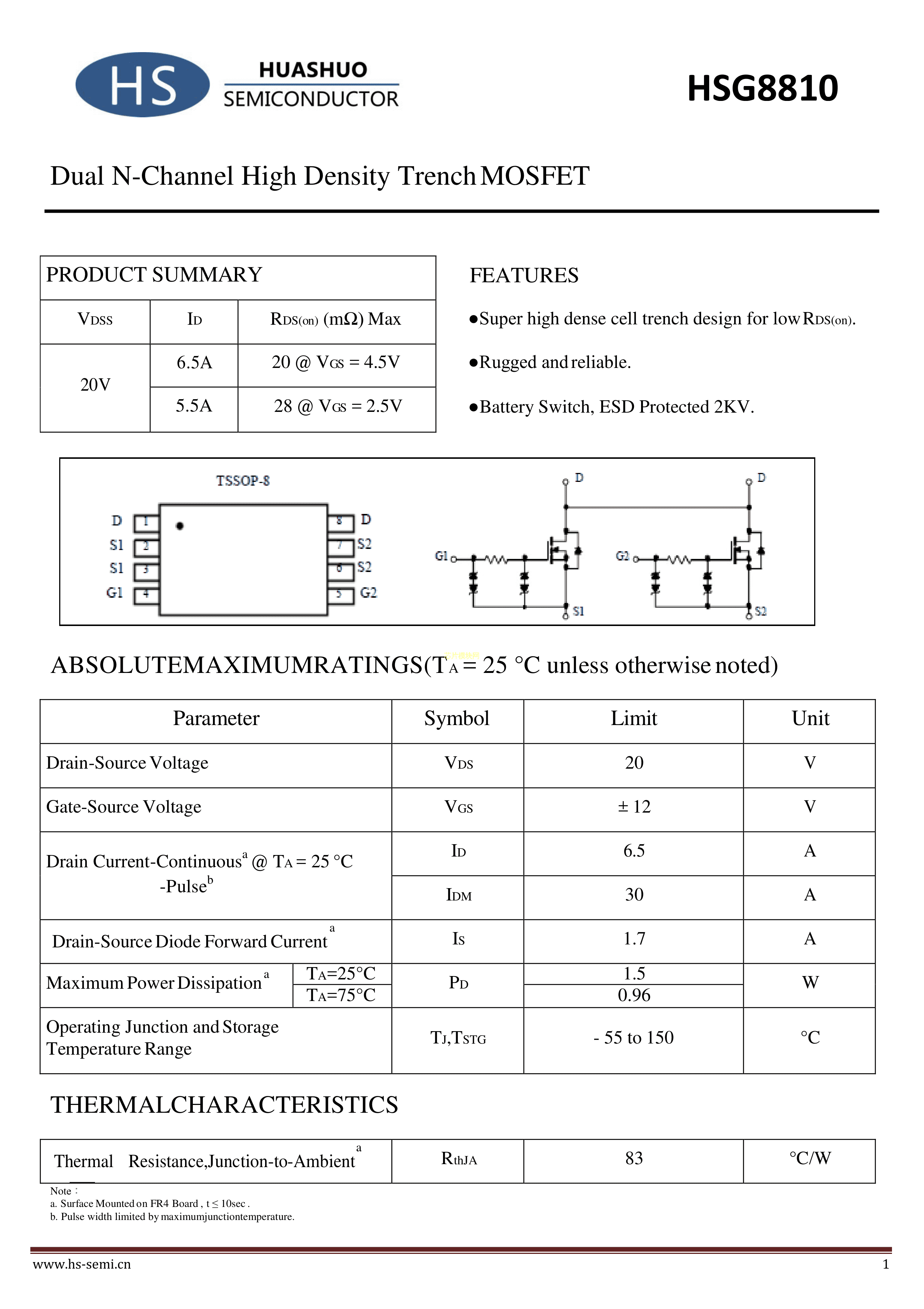HSG8810数据手册TSSOP-8封装HUASHUO(华朔)PDF规格书,中英文下载