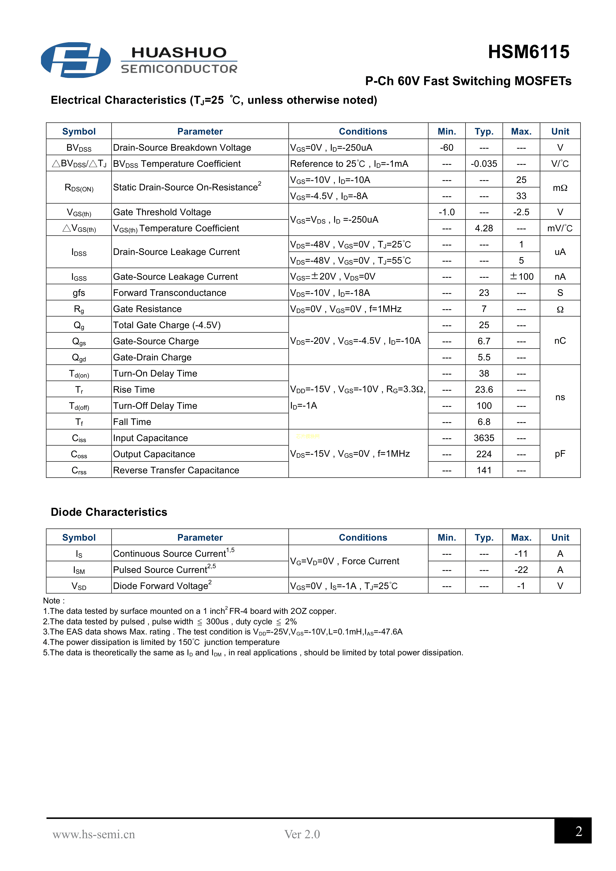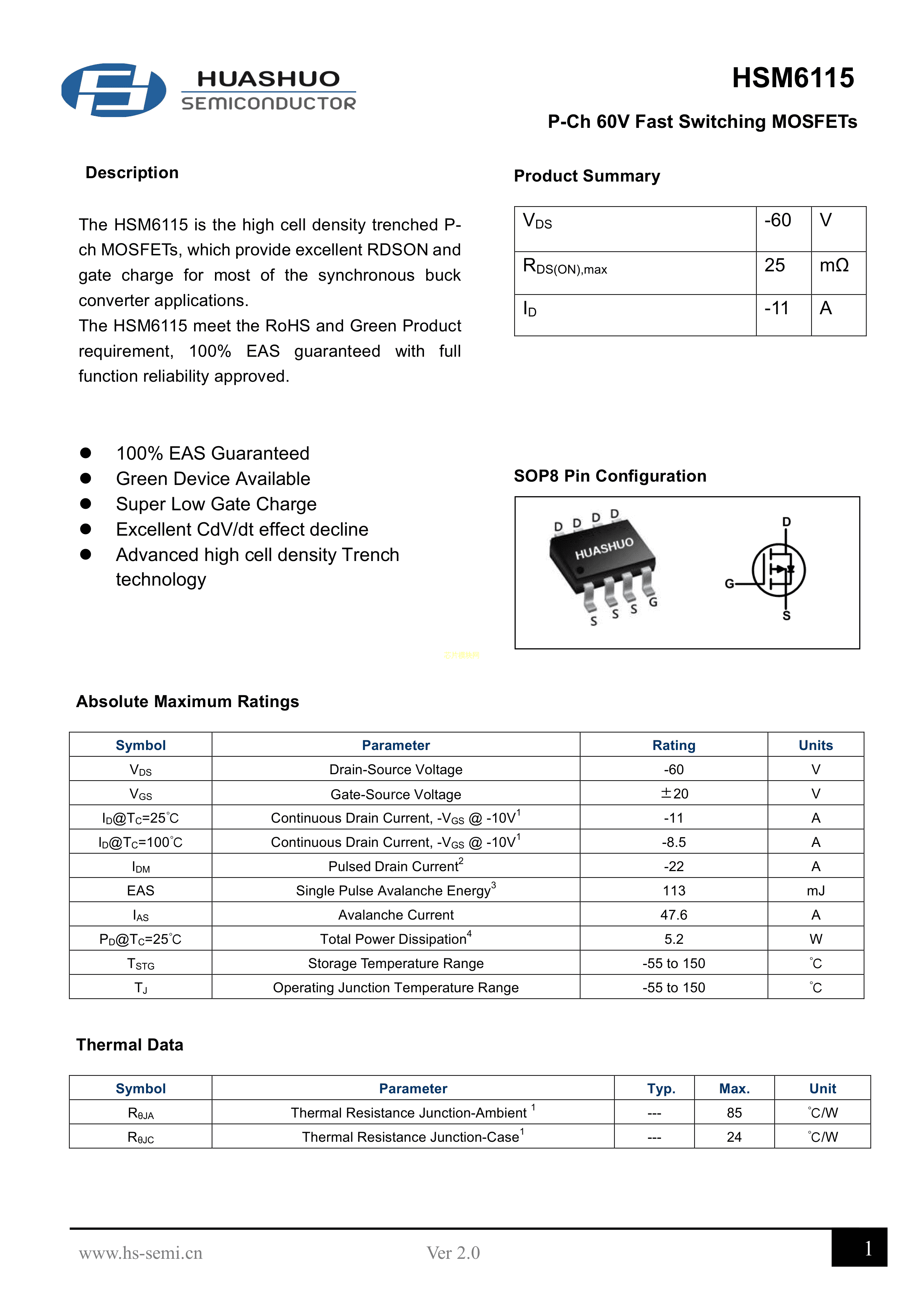 HSM6115数据手册SOP-8封装HUASHUO(华朔)PDF规格书,中英文下载