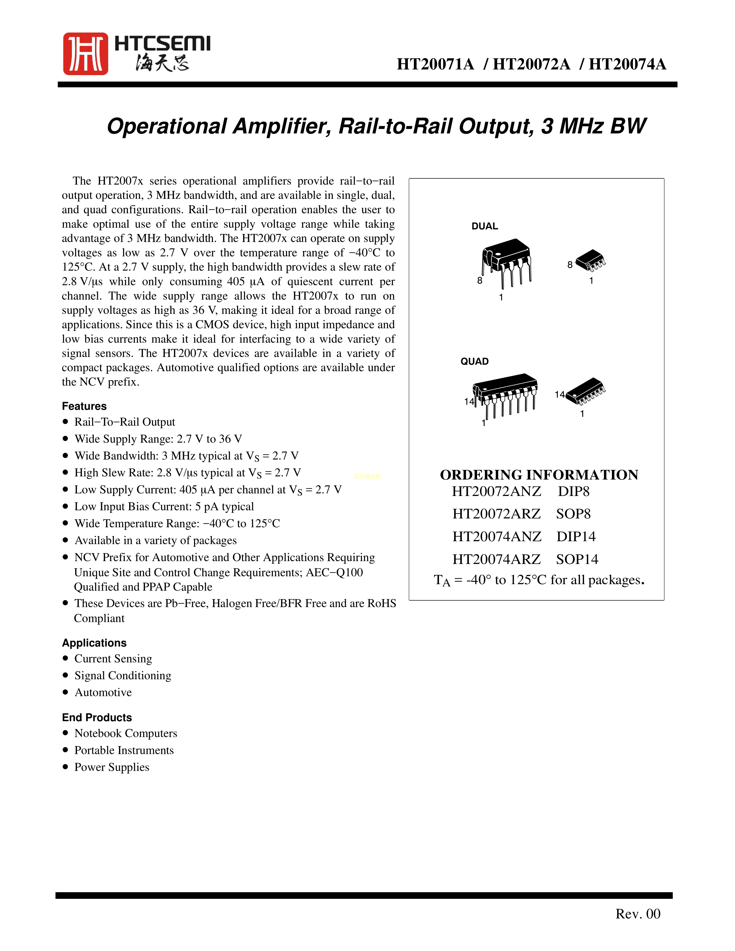 HT20072ARZ数据手册SOP8封装HTCSEMI(海天芯)PDF规格书,中英文下载