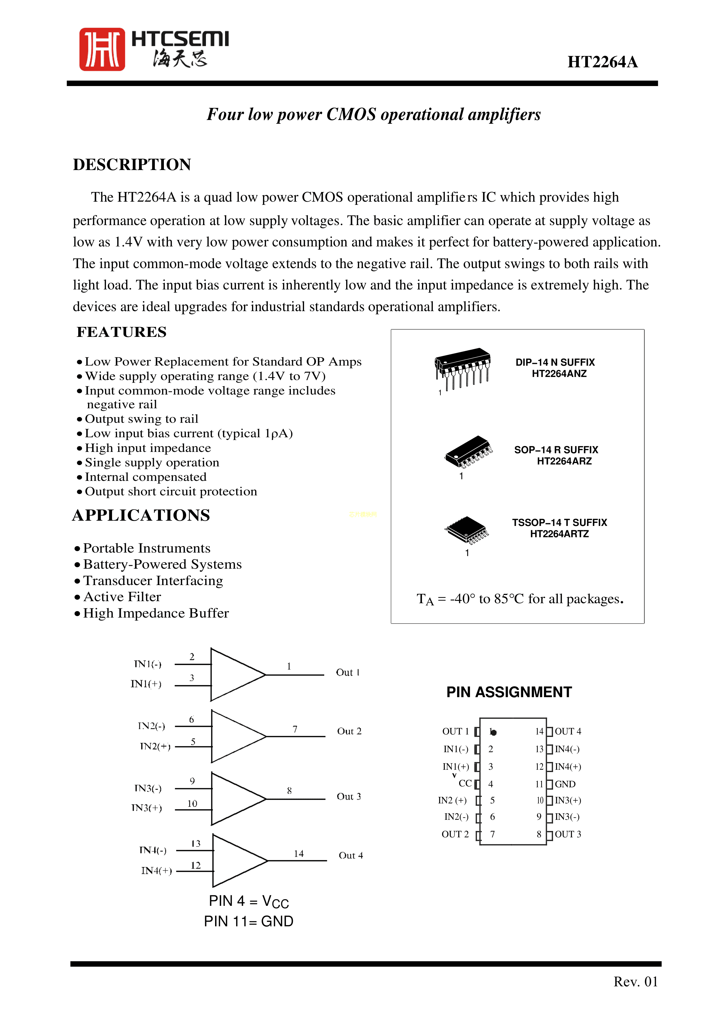 HT2264ARZ数据手册SOP14封装HTCSEMI(海天芯)PDF规格书,中英文下载