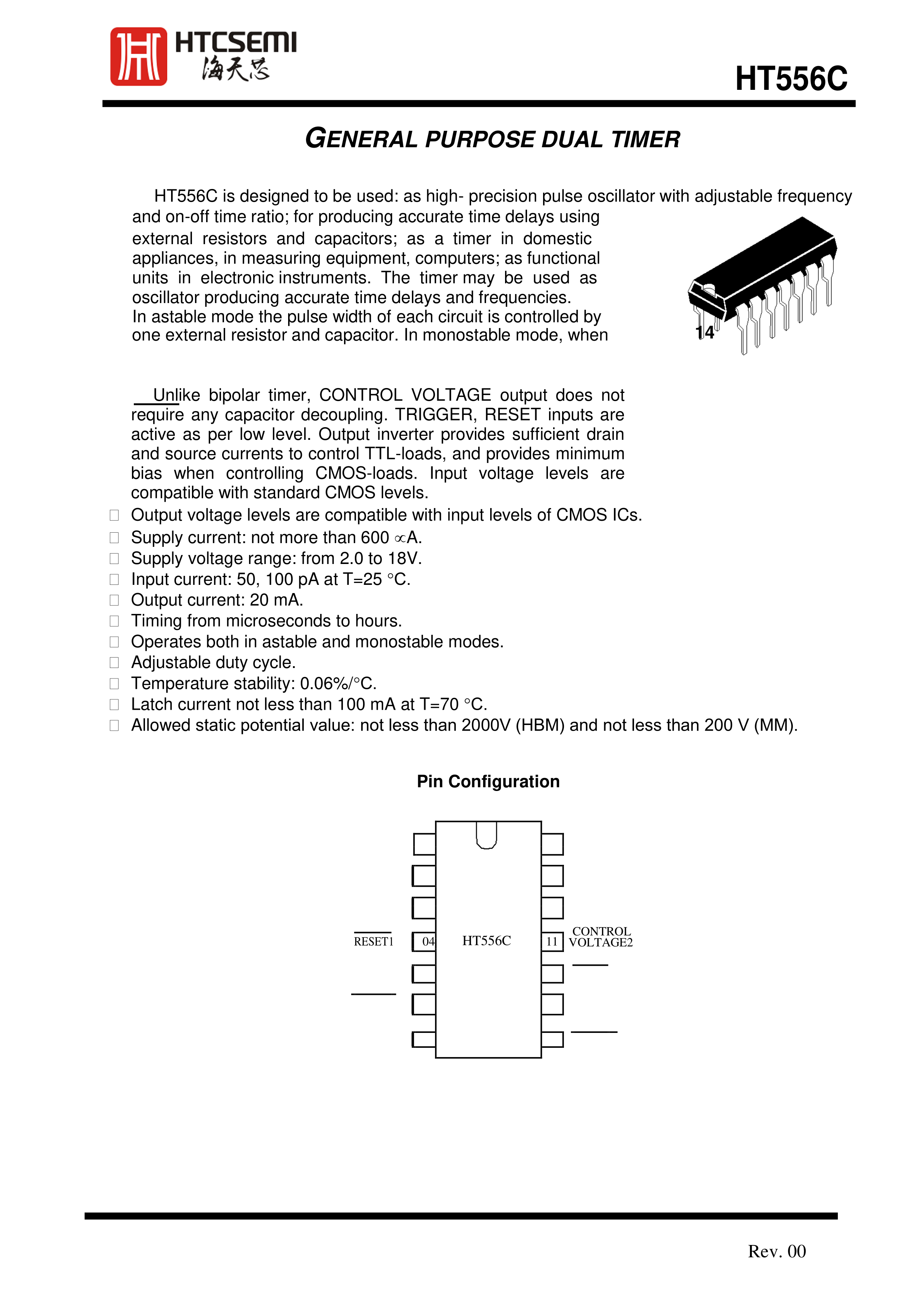 HT556CRZ数据手册SOIC-14封装HTCSEMI(海天芯)PDF规格书,中英文下载