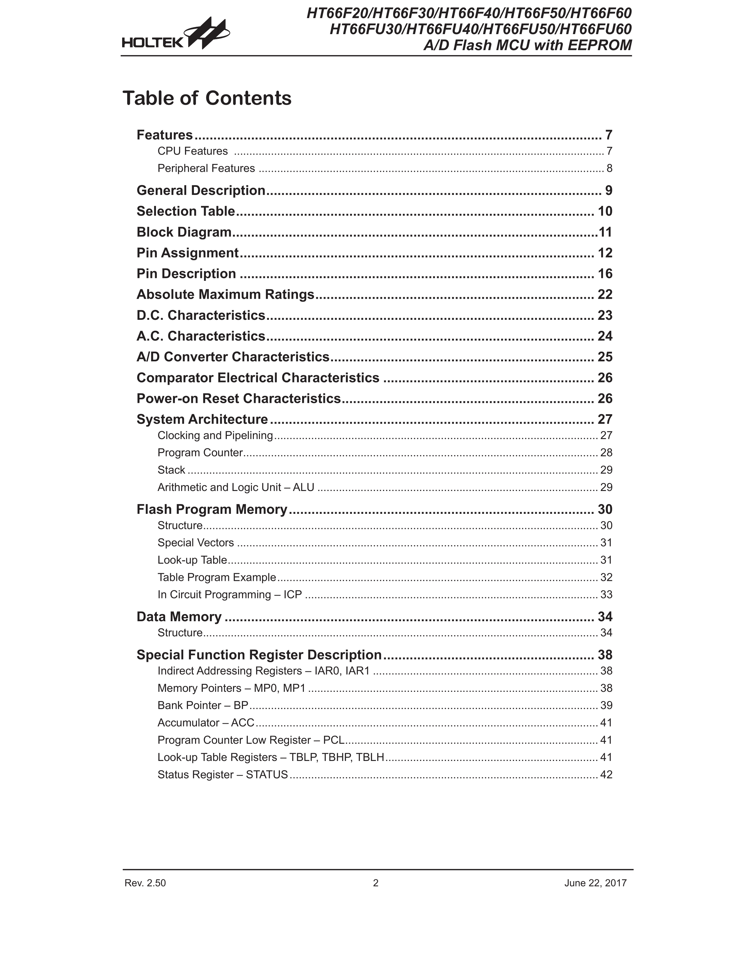 HT66F50数据手册LQFP-44封装HOLTEK(台湾合泰-盛群)PDF规格书,中英文下载