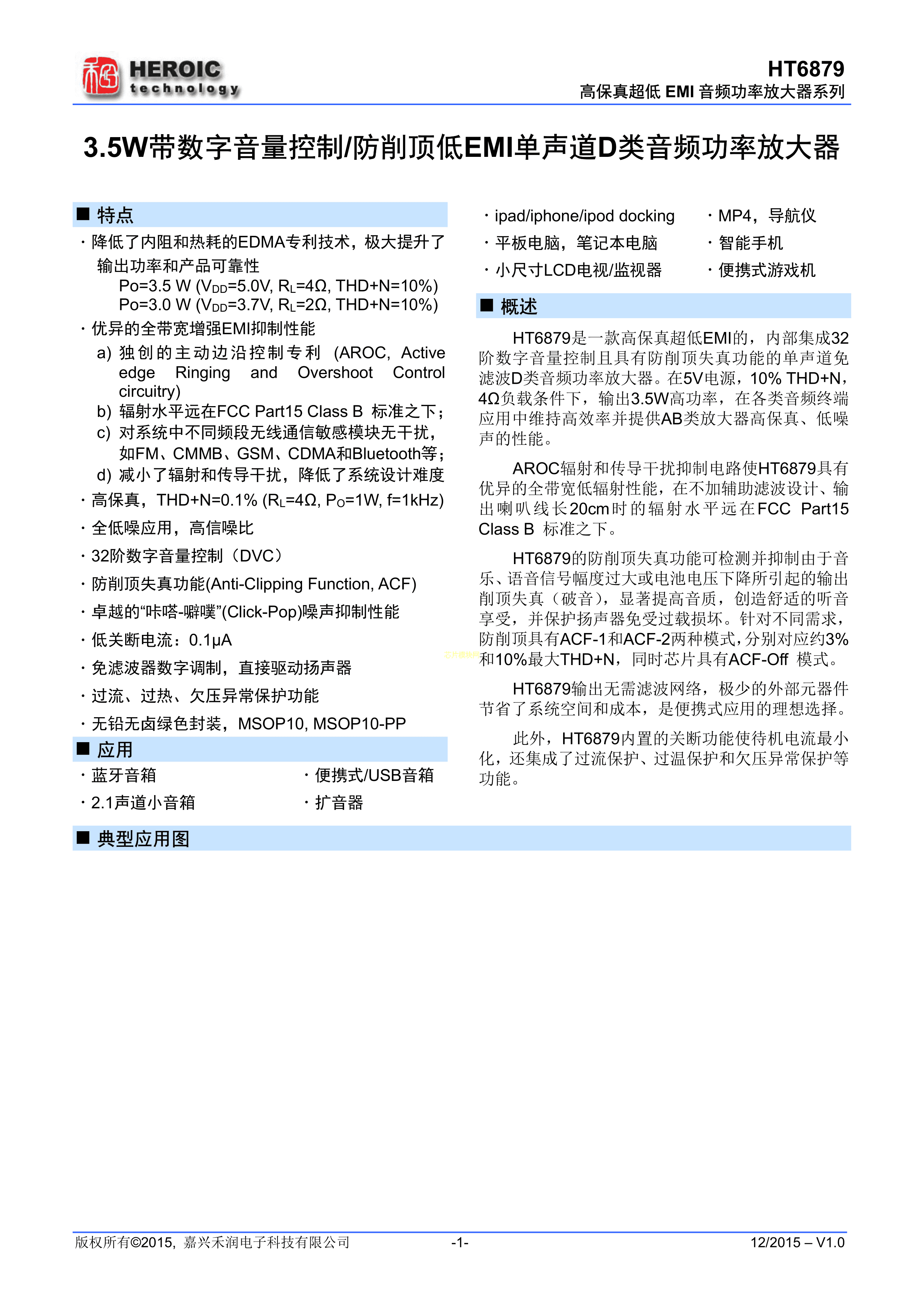 HT6879P数据手册MSOP-10封装嘉兴禾润PDF规格书,中英文下载