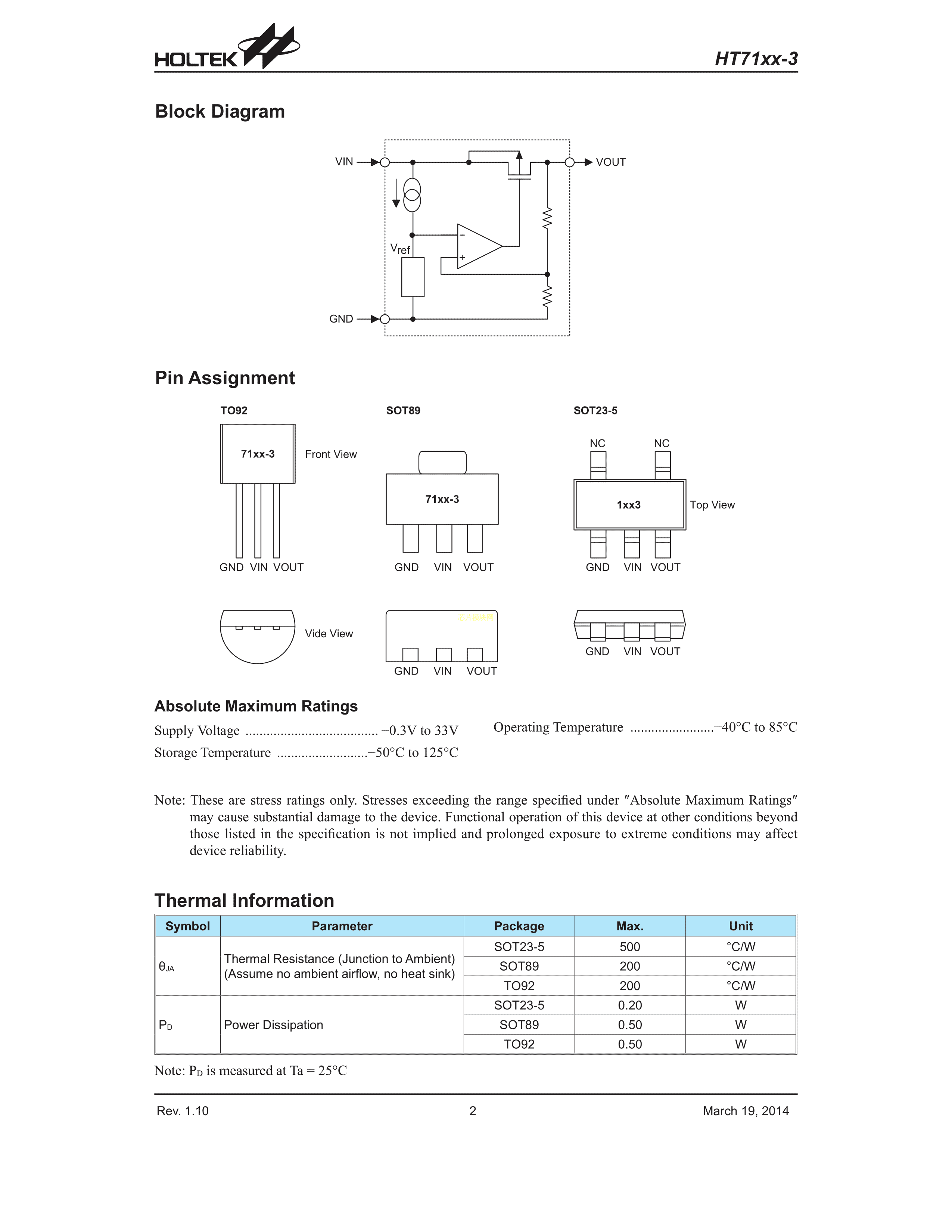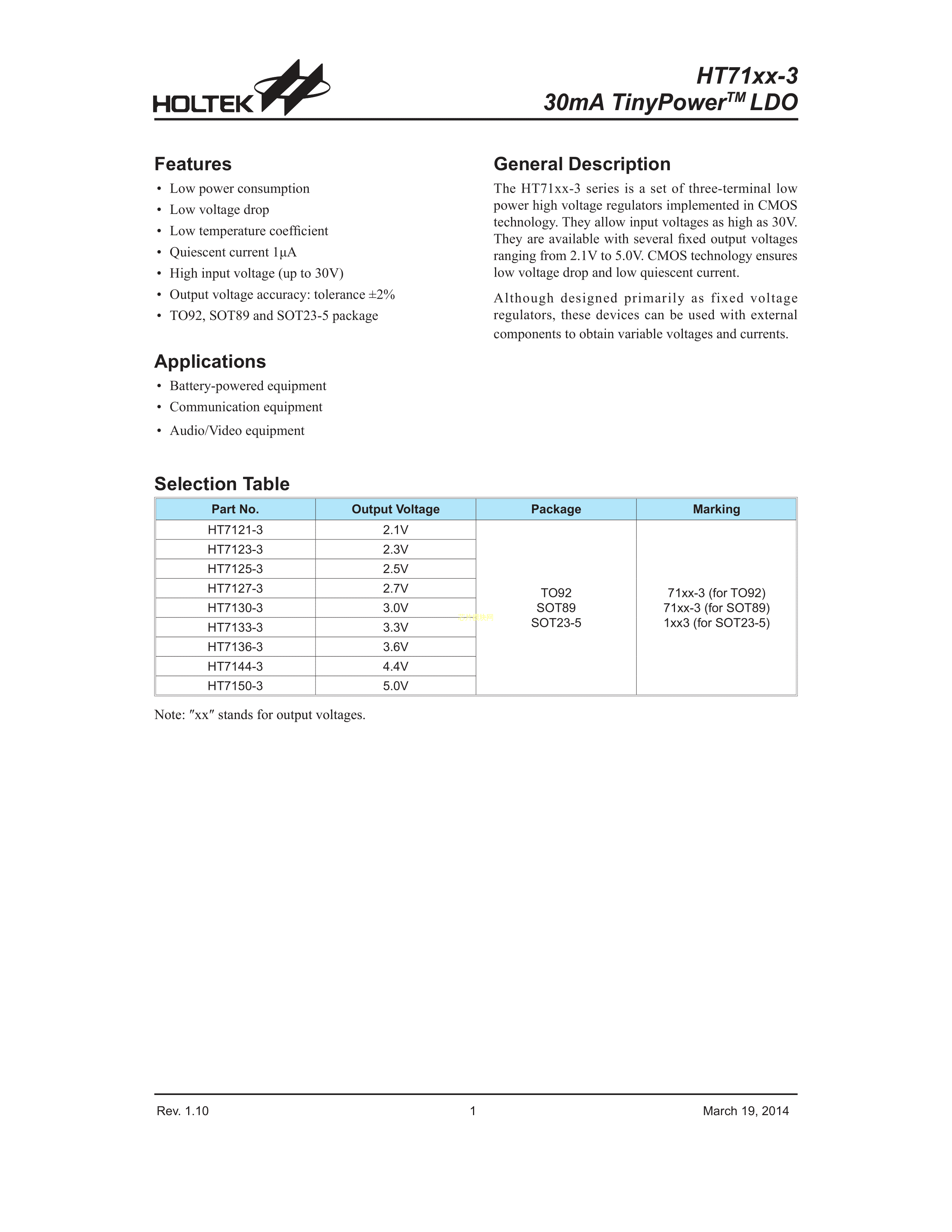 HT7123-3数据手册SOT-23-5封装HOLTEK(台湾合泰-盛群)PDF规格书,中英文下载